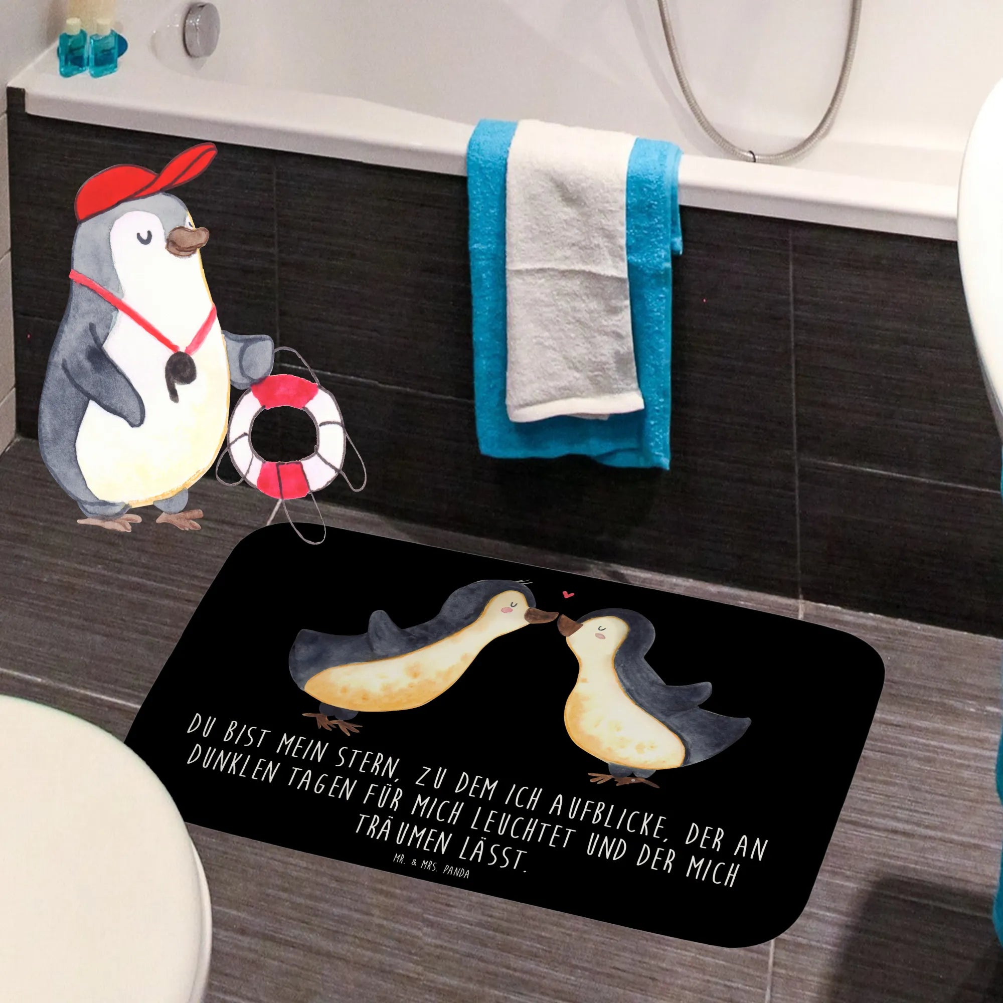 Entdecke die zauberhafte Badematte "Pinguin Liebe" von Mr. & Mrs. Panda – ein wahrer Blickfang für dein Badezimmer! Diese besondere Badezimmermatte ist nicht nur ein praktisches Accessoire, sondern auch eine liebevolle Hommage an die romantische Verbundenheit, die wir mit unseren Liebsten teilen.