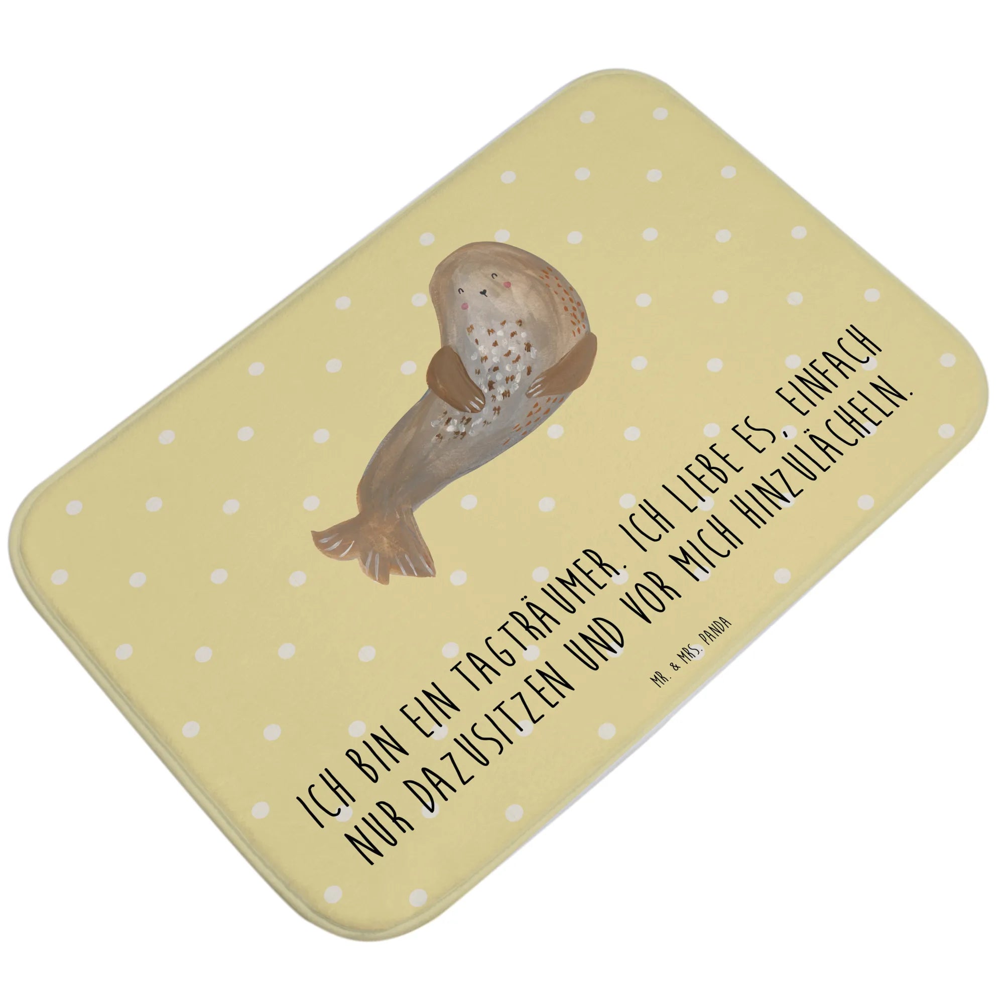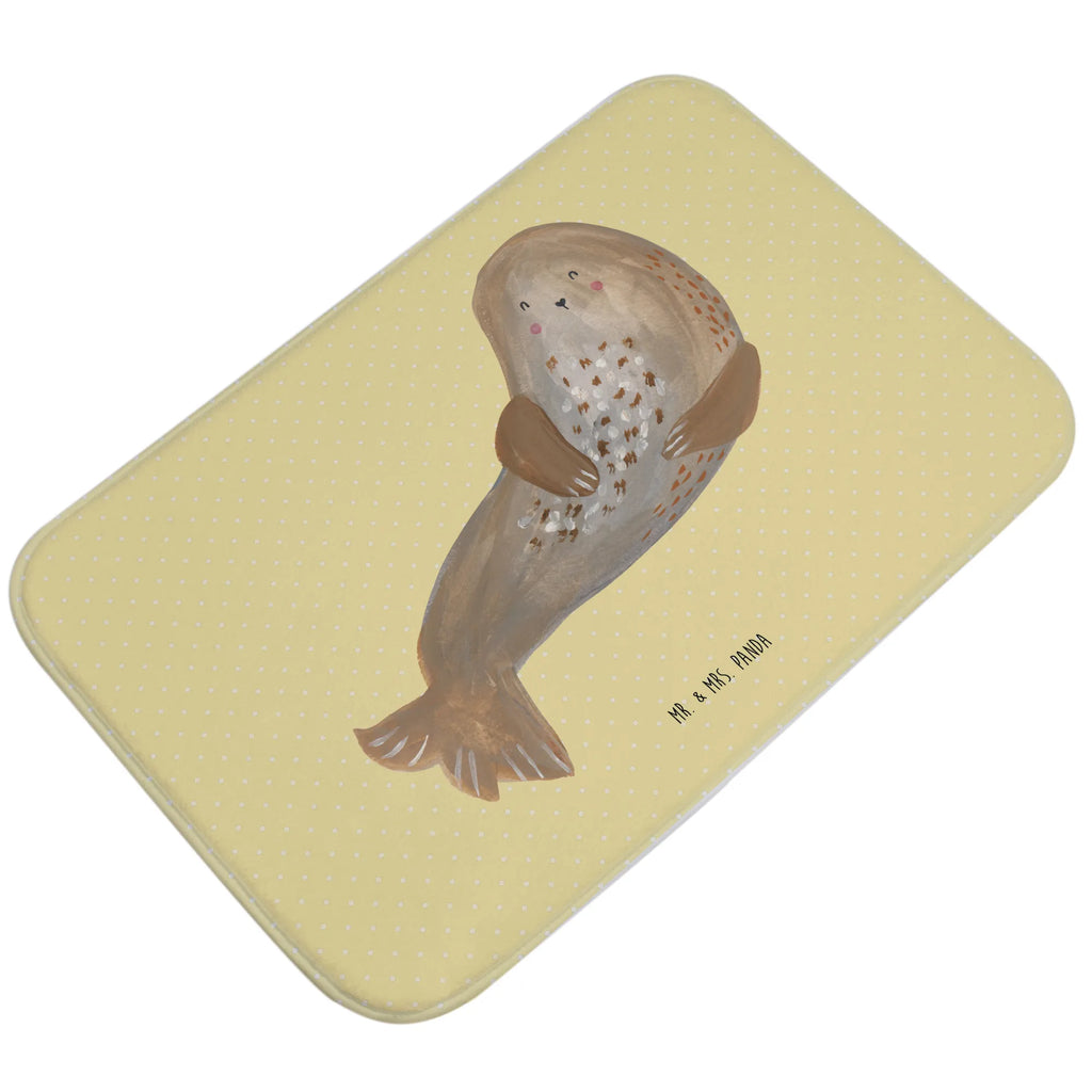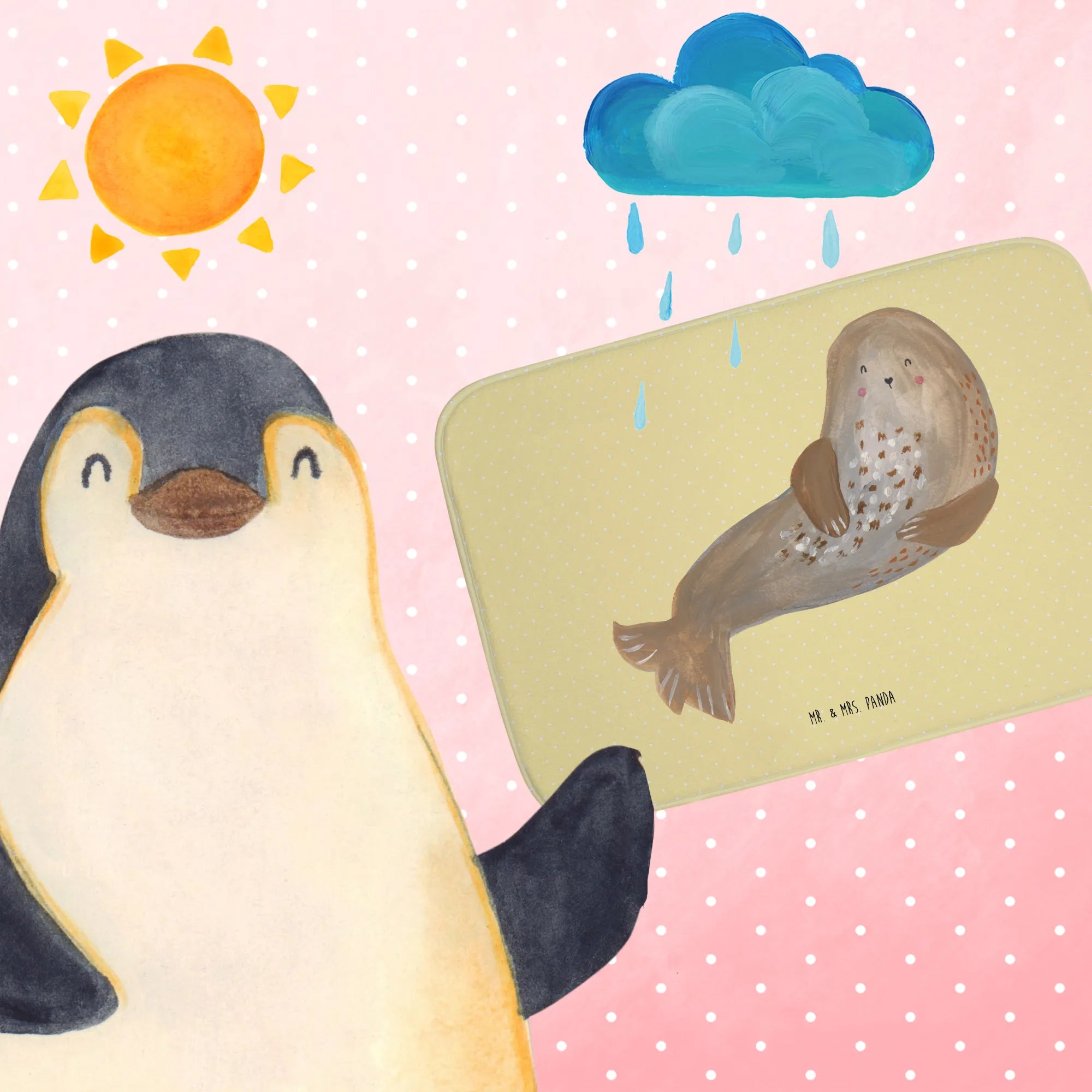 Entdecke den perfekten Badvorleger mit der fröhlichen Robbe von Mr. & Mrs. Panda! Diese zauberhafte Badematte, die perfekt in jedes Badezimmer passt, bringt nicht nur Farbe in deinen Raum, sondern auch eine große Portion gute Laune!