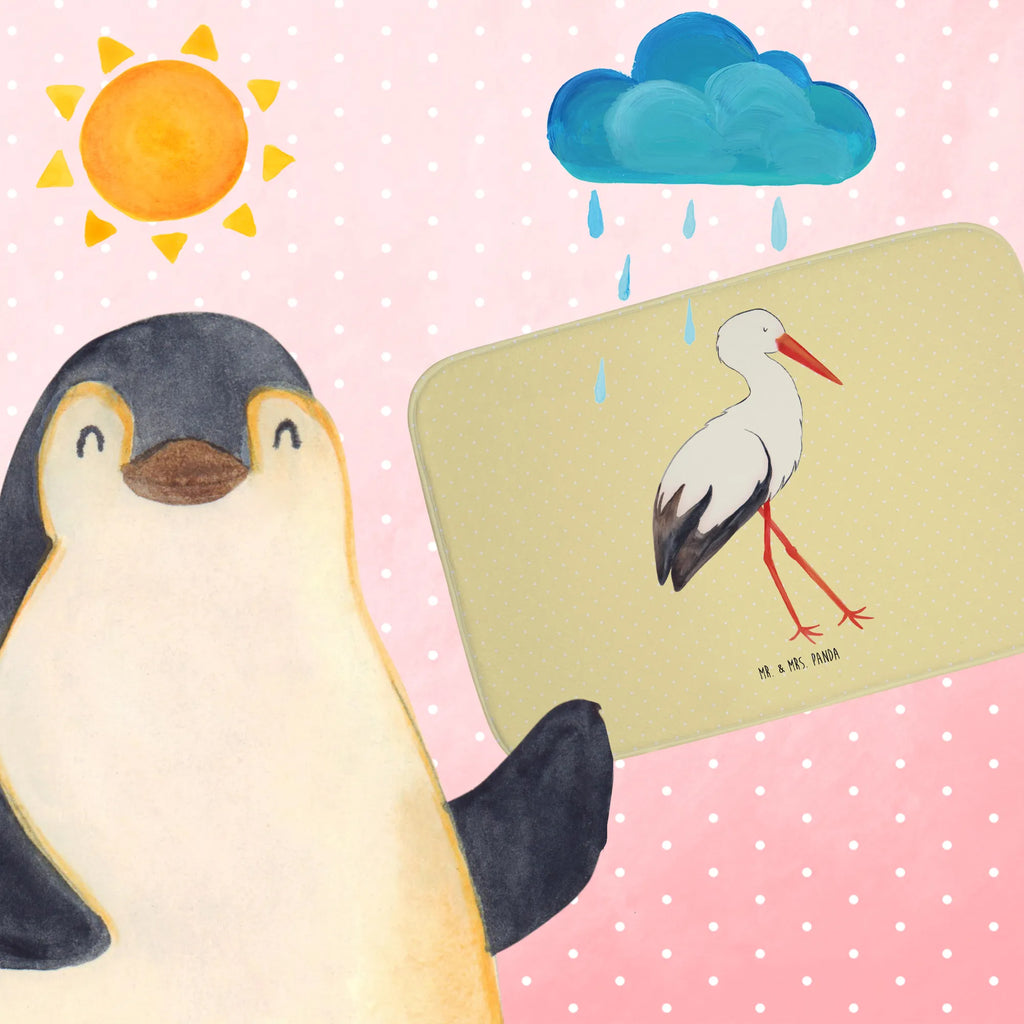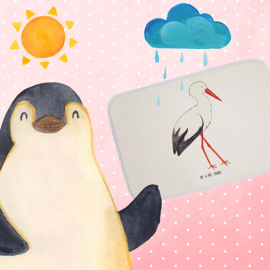 Der Badvorleger Storch aus der Small World Kollektion von Mr. & Mrs. Panda ist nicht nur ein praktisches Badezimmeraccessoire, sondern auch ein herzliches Geschenk für werdende Mütter oder frisch gebackene Eltern. Mit seinem zauberhaften Motiv eines Storches, der ein Baby in einem Tuch trägt, haucht er jedem Badezimmer eine liebevolle Note ein.