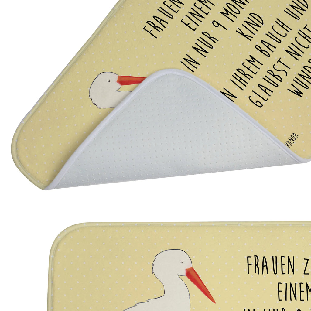 Dieser zauberhafte Badvorleger von Mr. & Mrs. Panda ist nicht nur ein wahres Schmuckstück für dein Badezimmer, sondern auch die perfekte Geschenkidee für werdende Mütter und frischgebackene Eltern! Mit einem süßen Storch, der ein Baby in einem Tuch trägt, verleiht dieser Badteppich jedem Badezimmer eine fröhliche Note. Der liebevoll gestaltete Badvorleger ist Teil der beliebten Small World Kollektion, die voller Lebensfreude und bunten Motiven steckt.