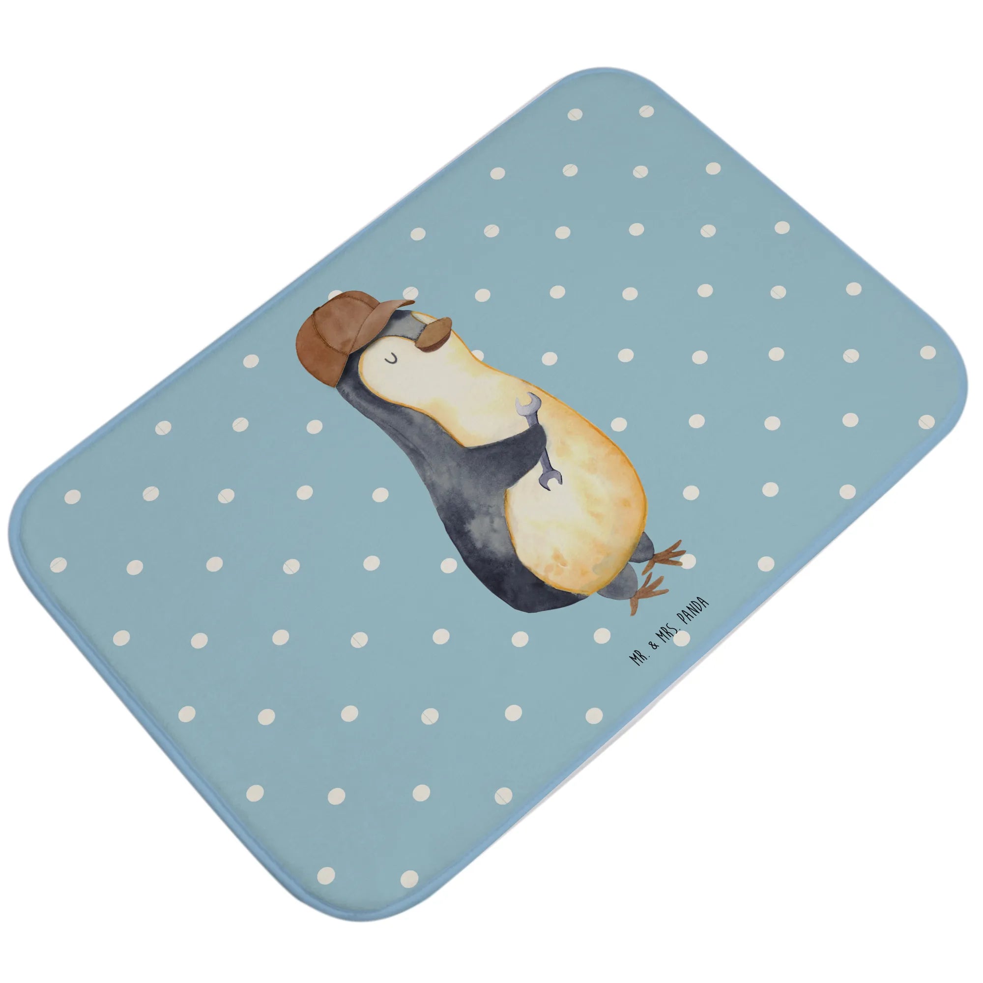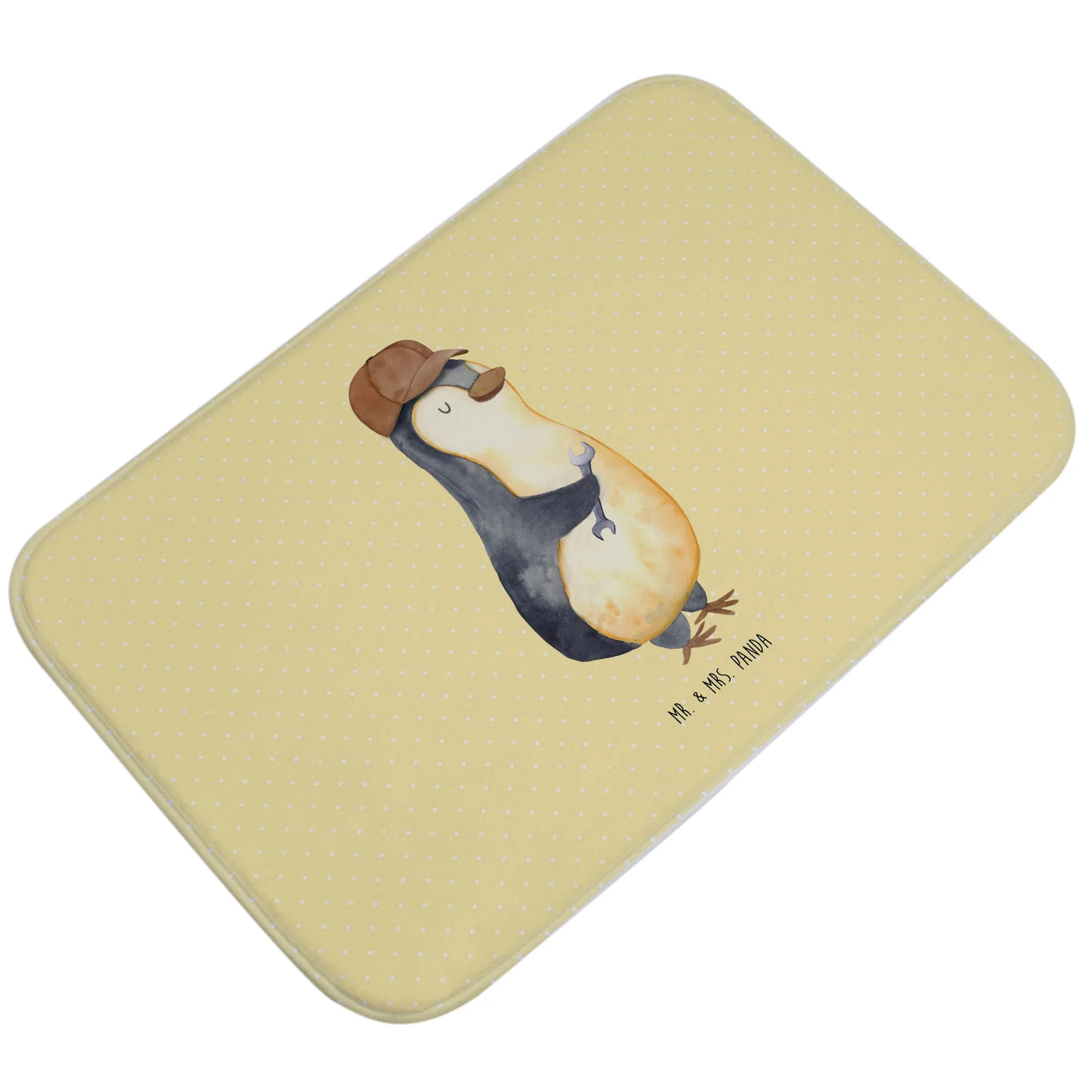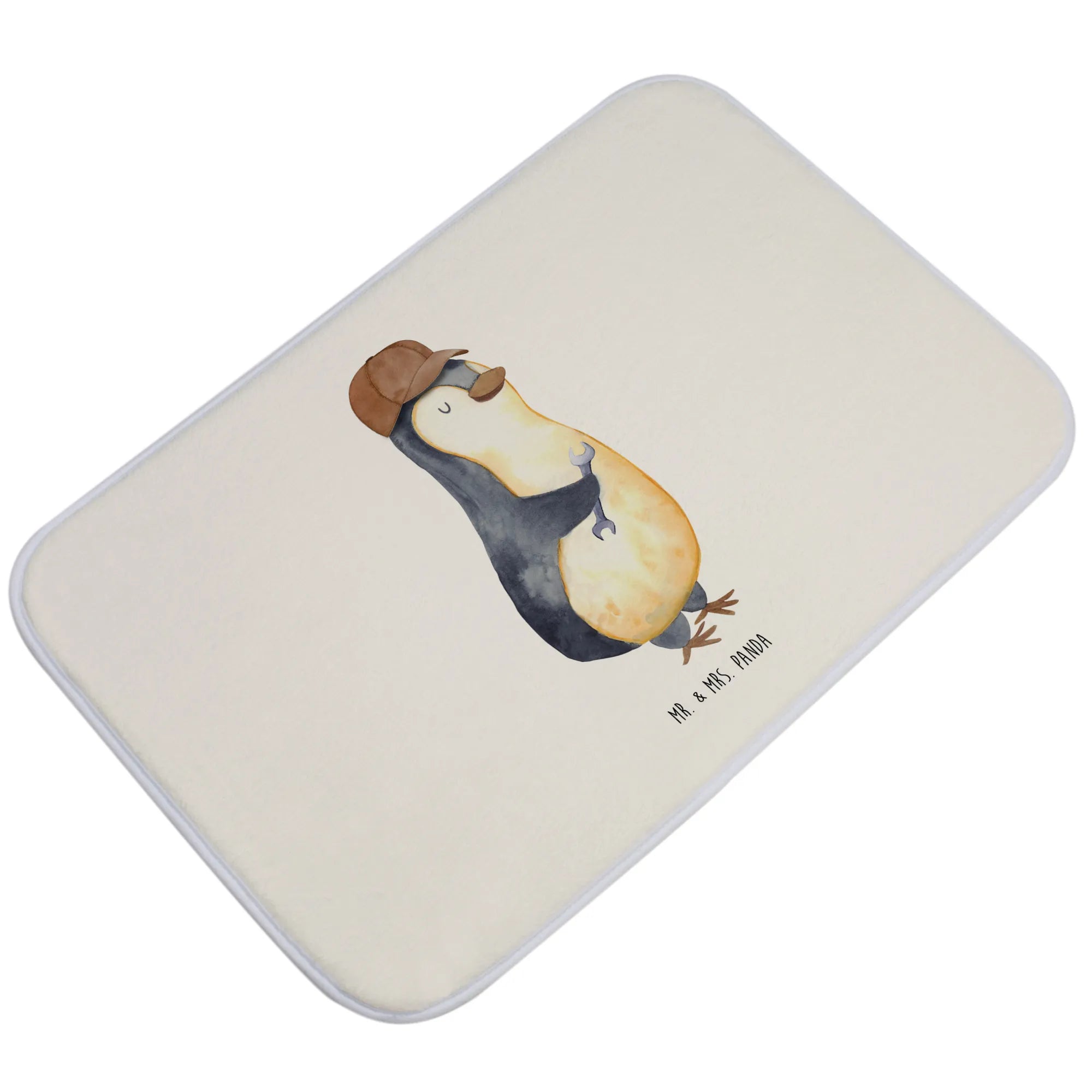 Mit dem netten Pinguin-Motiv, der lässig mit einem Schraubenschlüssel posiert, wird dieser Badvorleger nicht nur zum praktischen Badezimmeraccessoire, sondern auch zum perfekten Ausdruck von Liebe und Humor.
