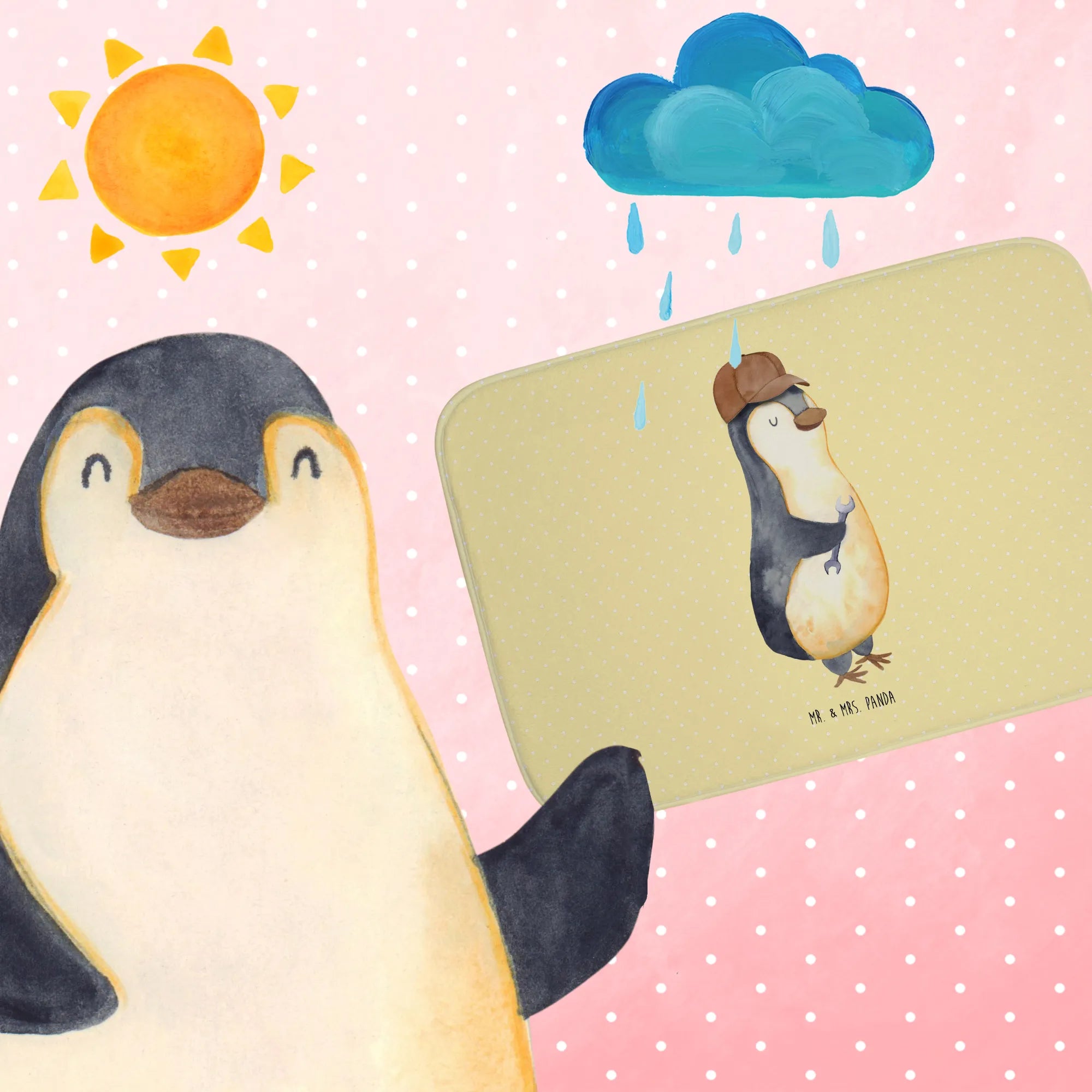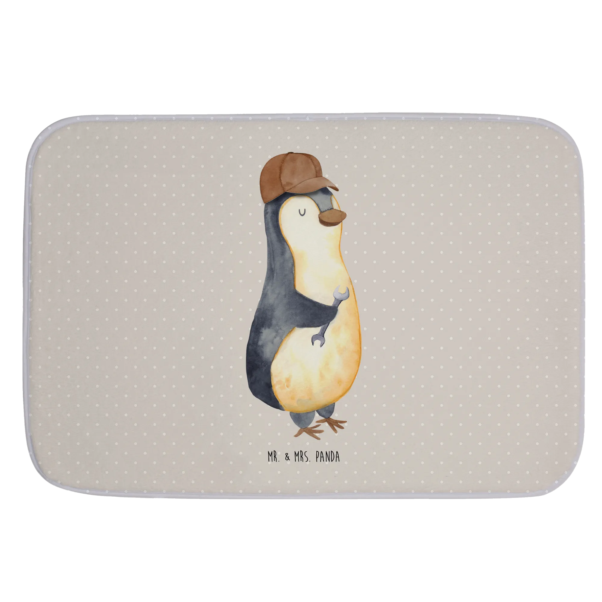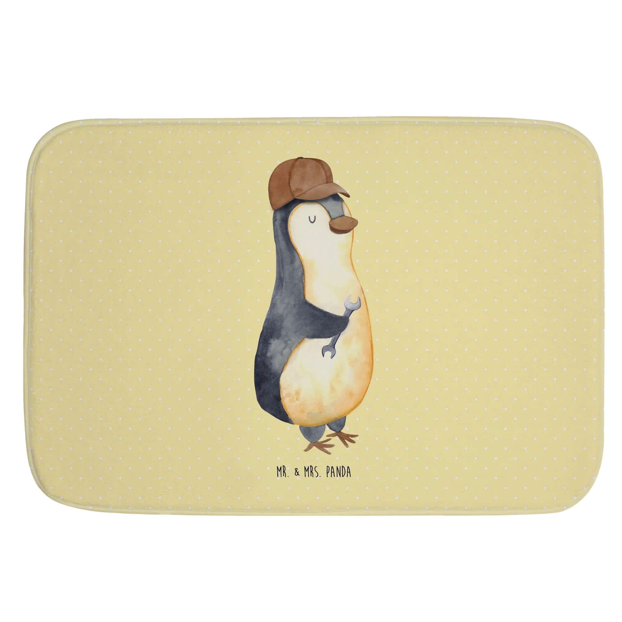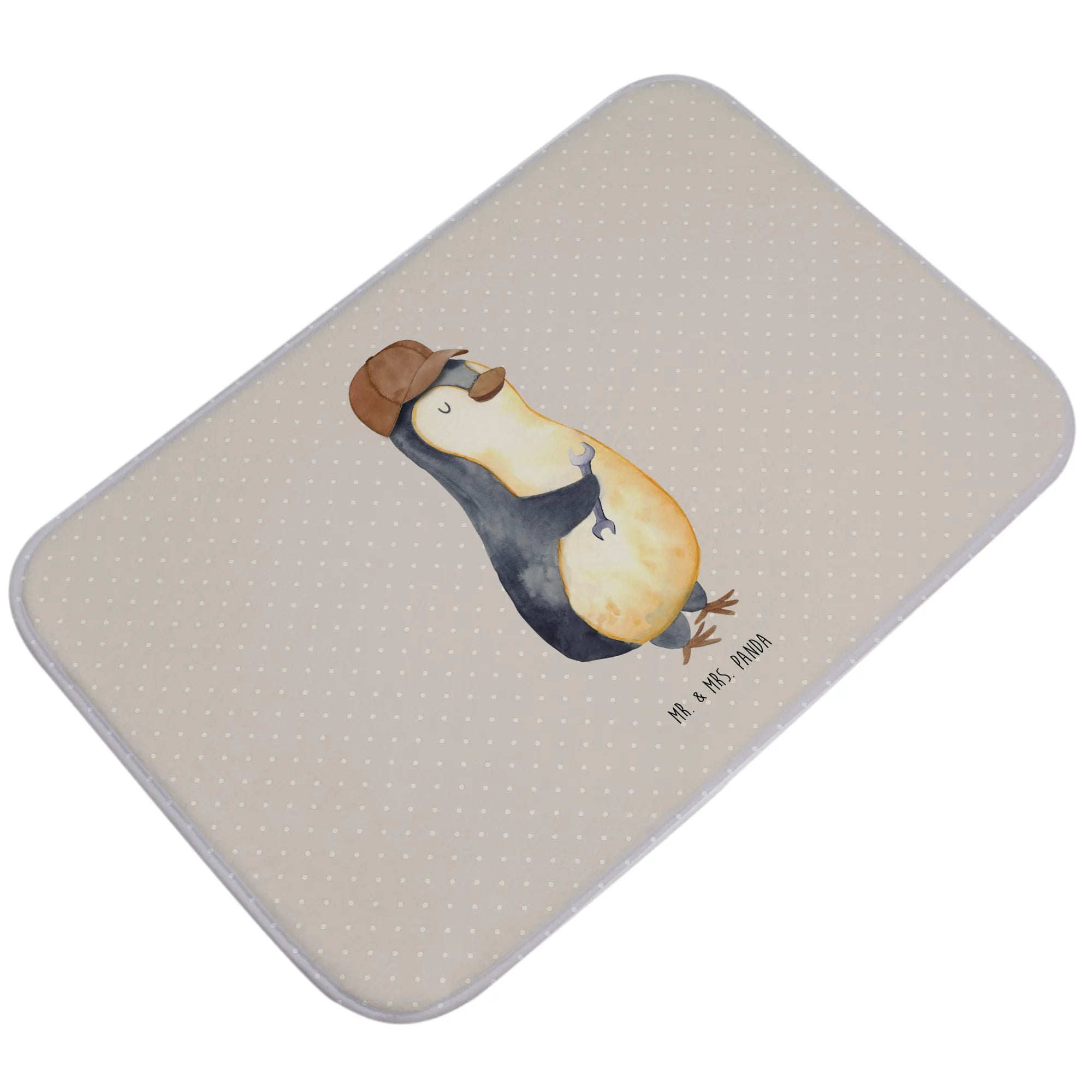 Mit dem netten Pinguin-Motiv, der lässig mit einem Schraubenschlüssel posiert, wird dieser Badvorleger nicht nur zum praktischen Badezimmeraccessoire, sondern auch zum perfekten Ausdruck von Liebe und Humor.