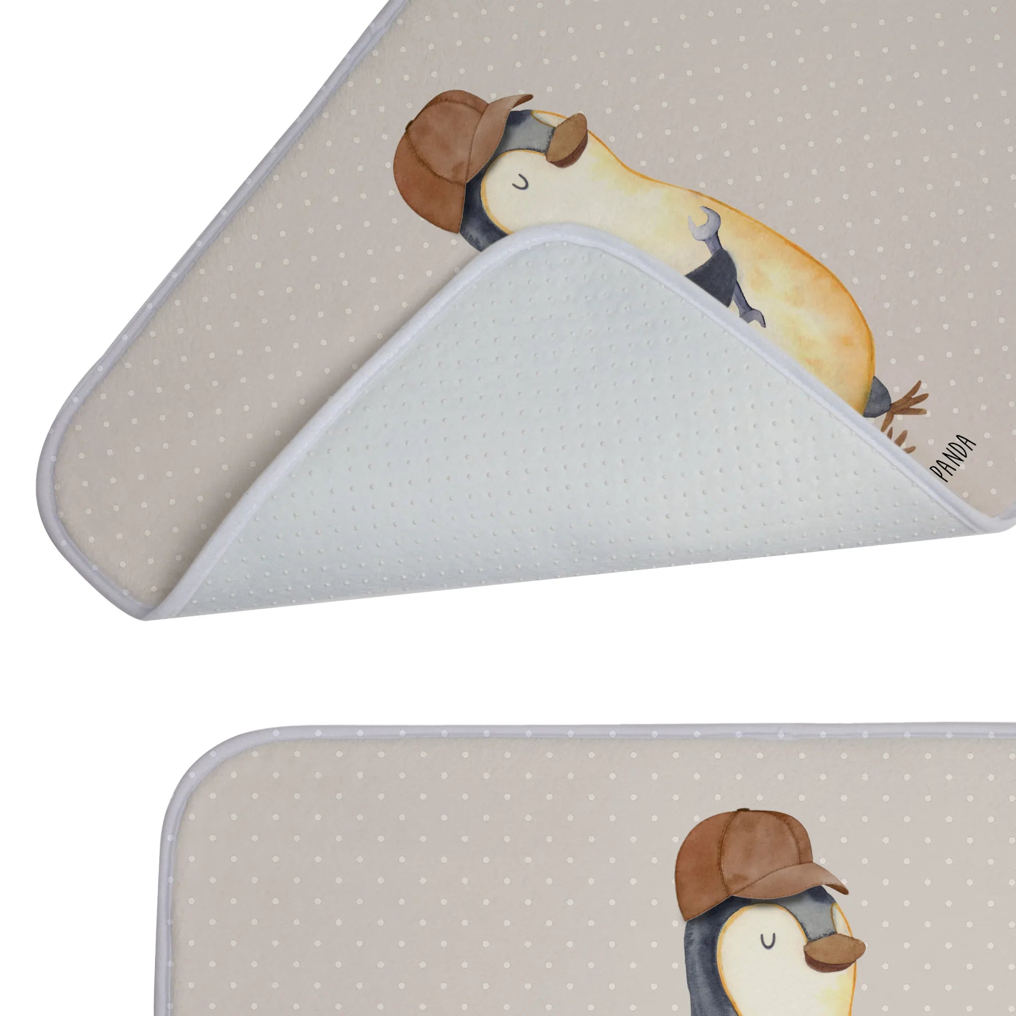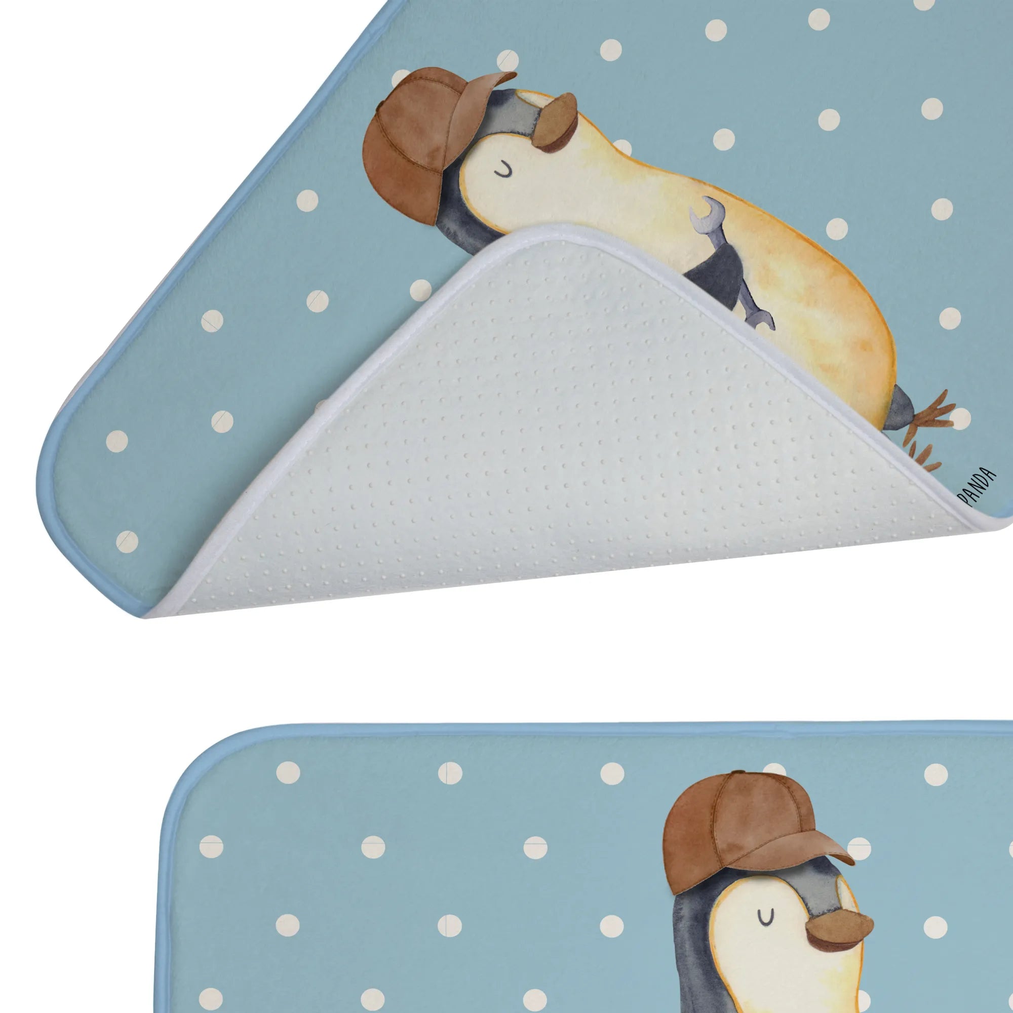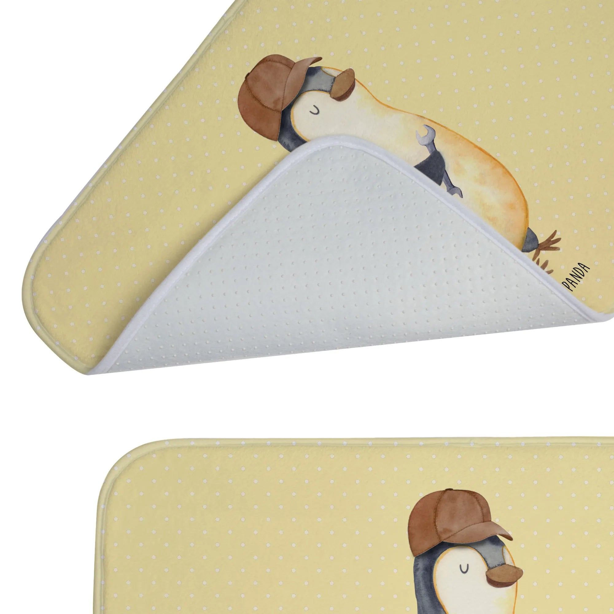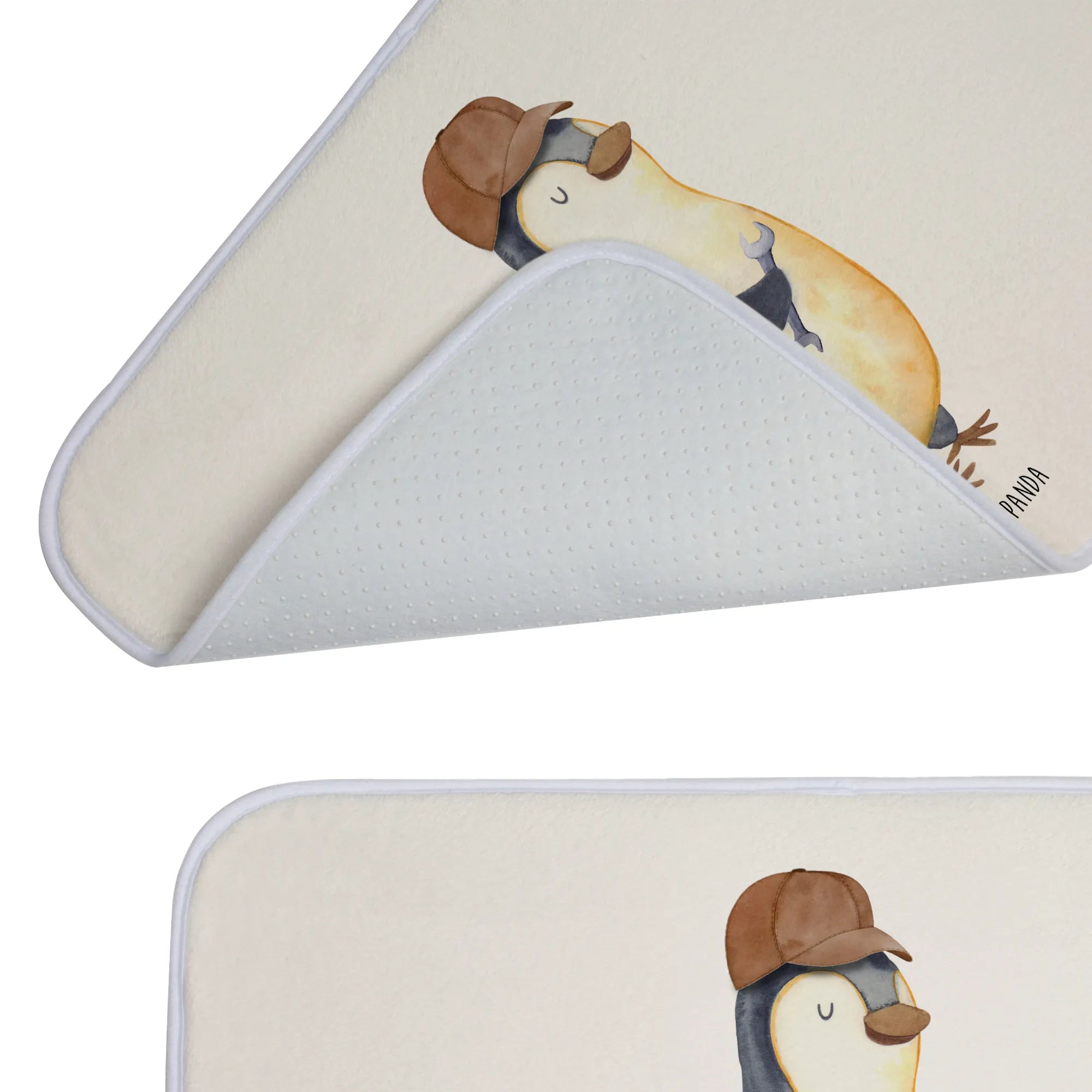 Mit einem charmanten Pinguin-Motiv, der lässig mit einem Schraubenschlüssel posiert, bringt er gleich mehrere Vorteile mit sich. Er sorgt für eine tolle Optik im Badezimmer und macht diese ausrutschsicher, dank seiner speziellen Anti-Rutsch Gummibeschichtung. Die flauschige Vorderseite sorgt für zusätzliche Gemütlichkeit und lässt deine Füße angenehm weich landen.