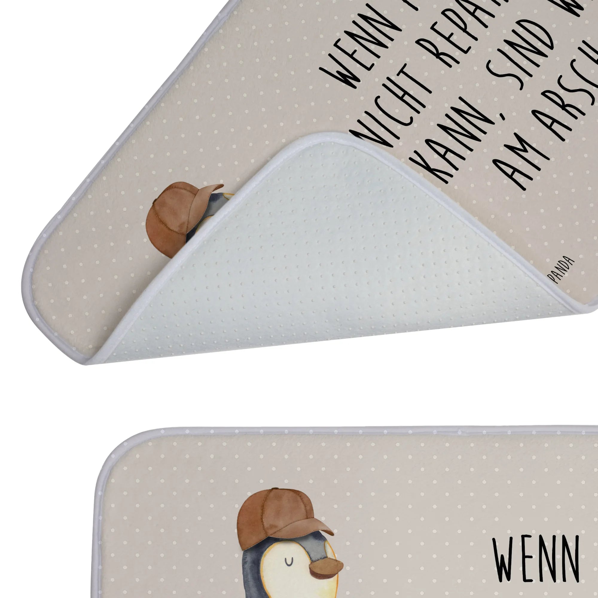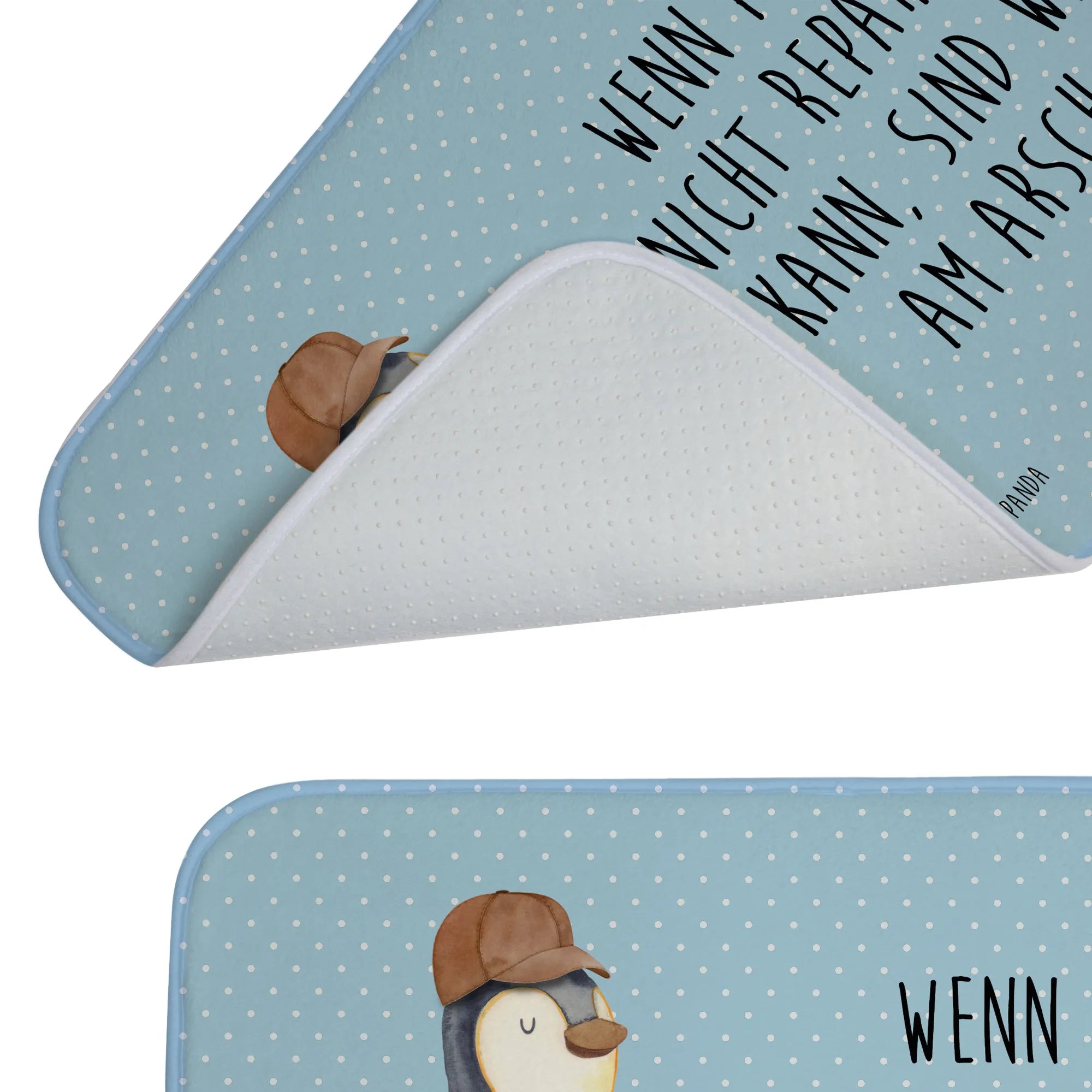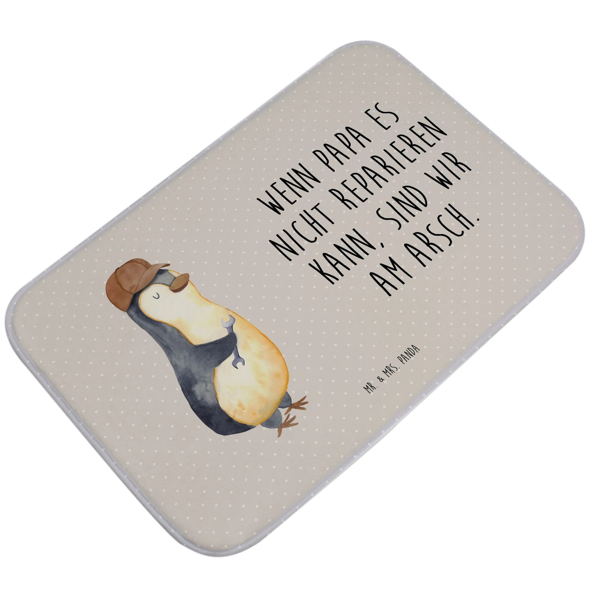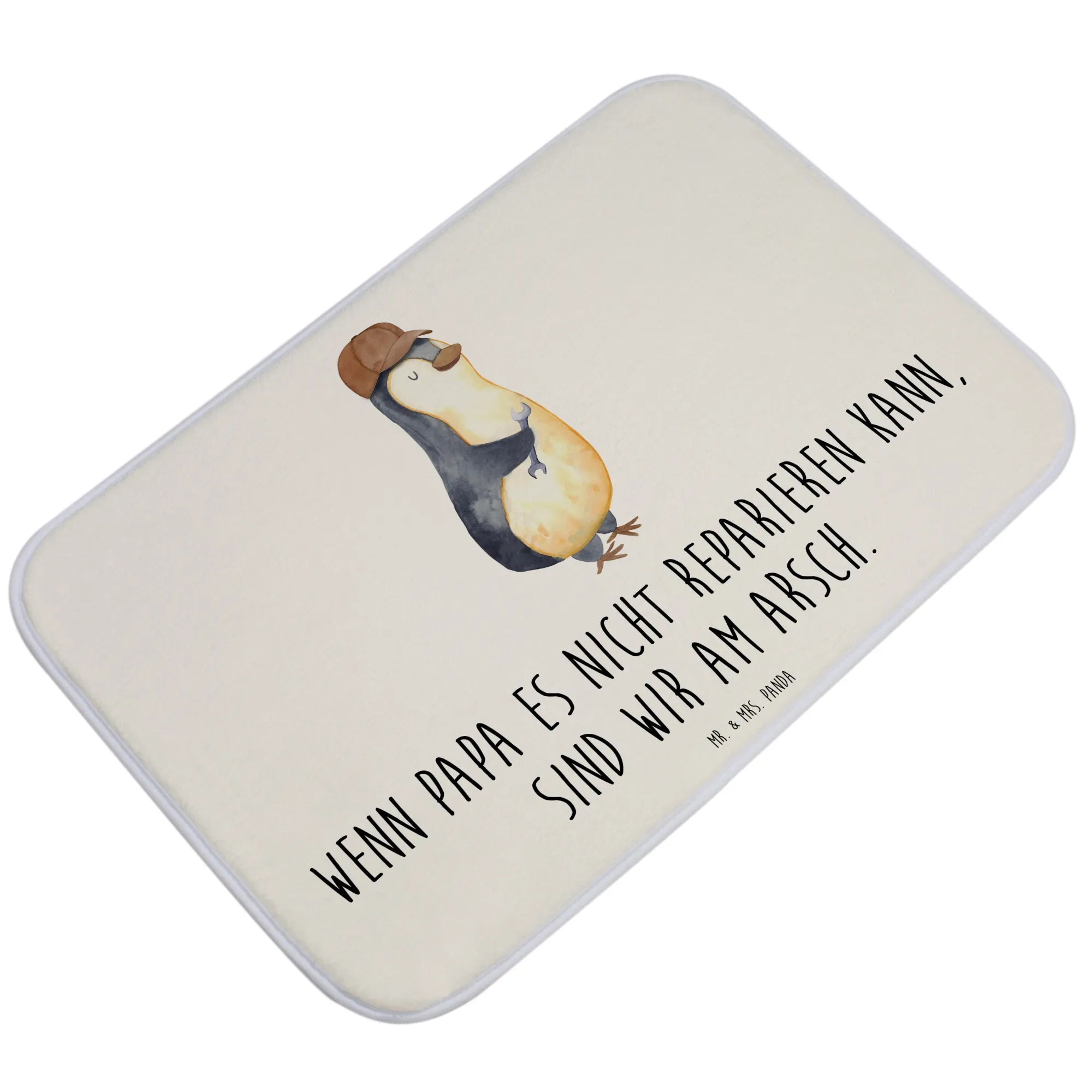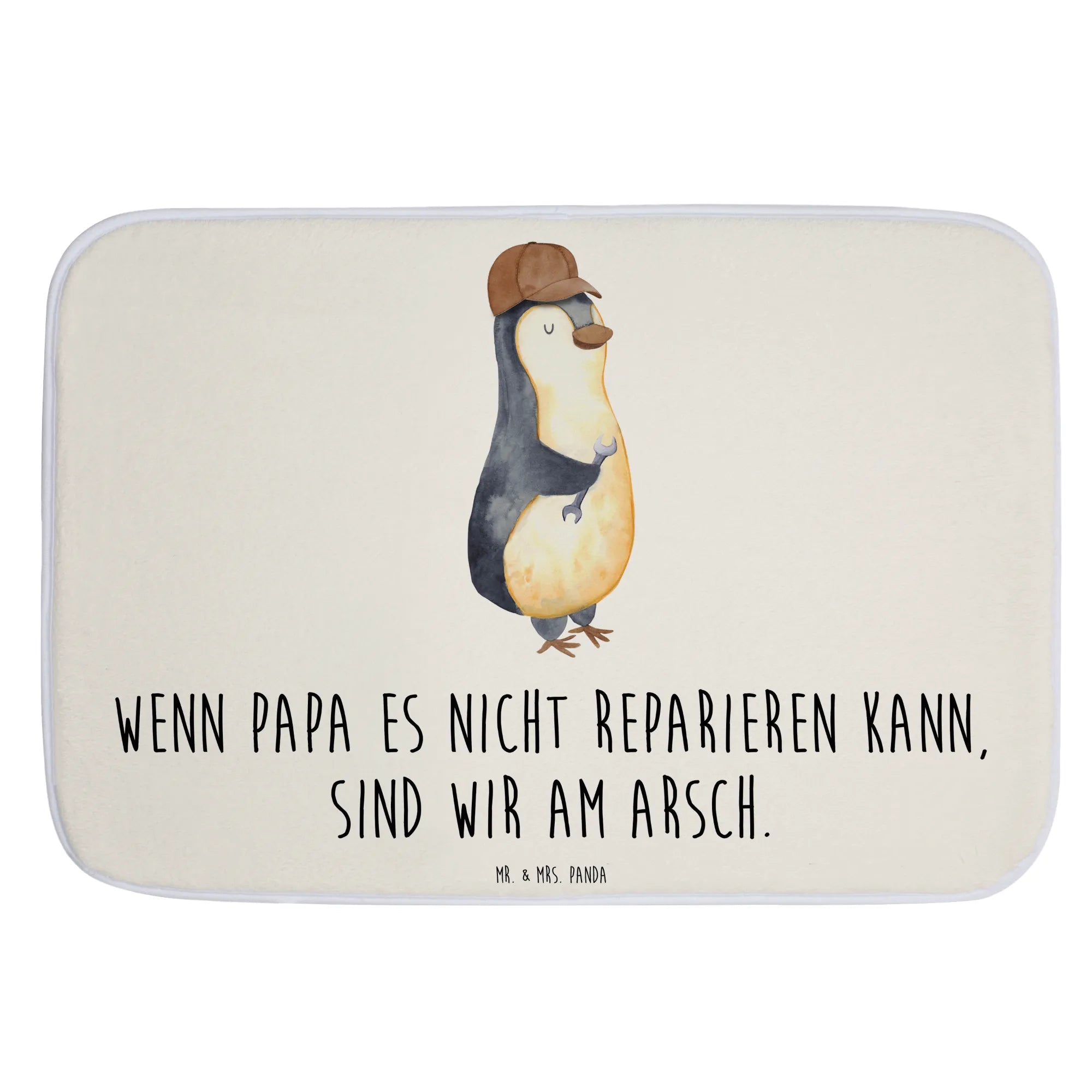 Dieser wunderschöne Badvorleger von Mr. & Mrs. Panda ist das perfekte Geschenk für alle Väter und tollen Papas! Das Motiv "Wenn Papa es nicht reparieren kann, sind wir am Arsch" zaubert jedem ein Lächeln ins Gesicht und bringt eine humorvolle Note ins Badezimmer.