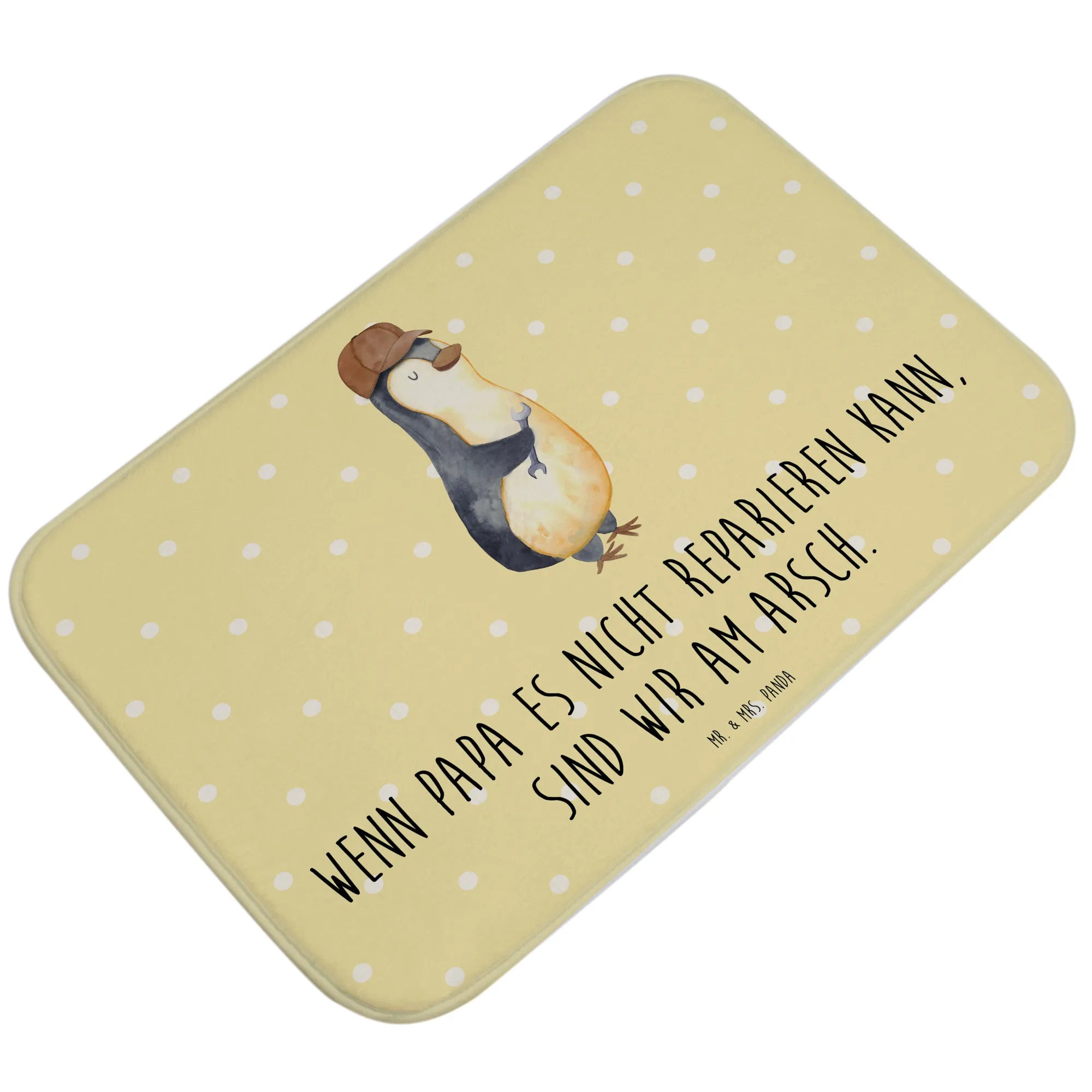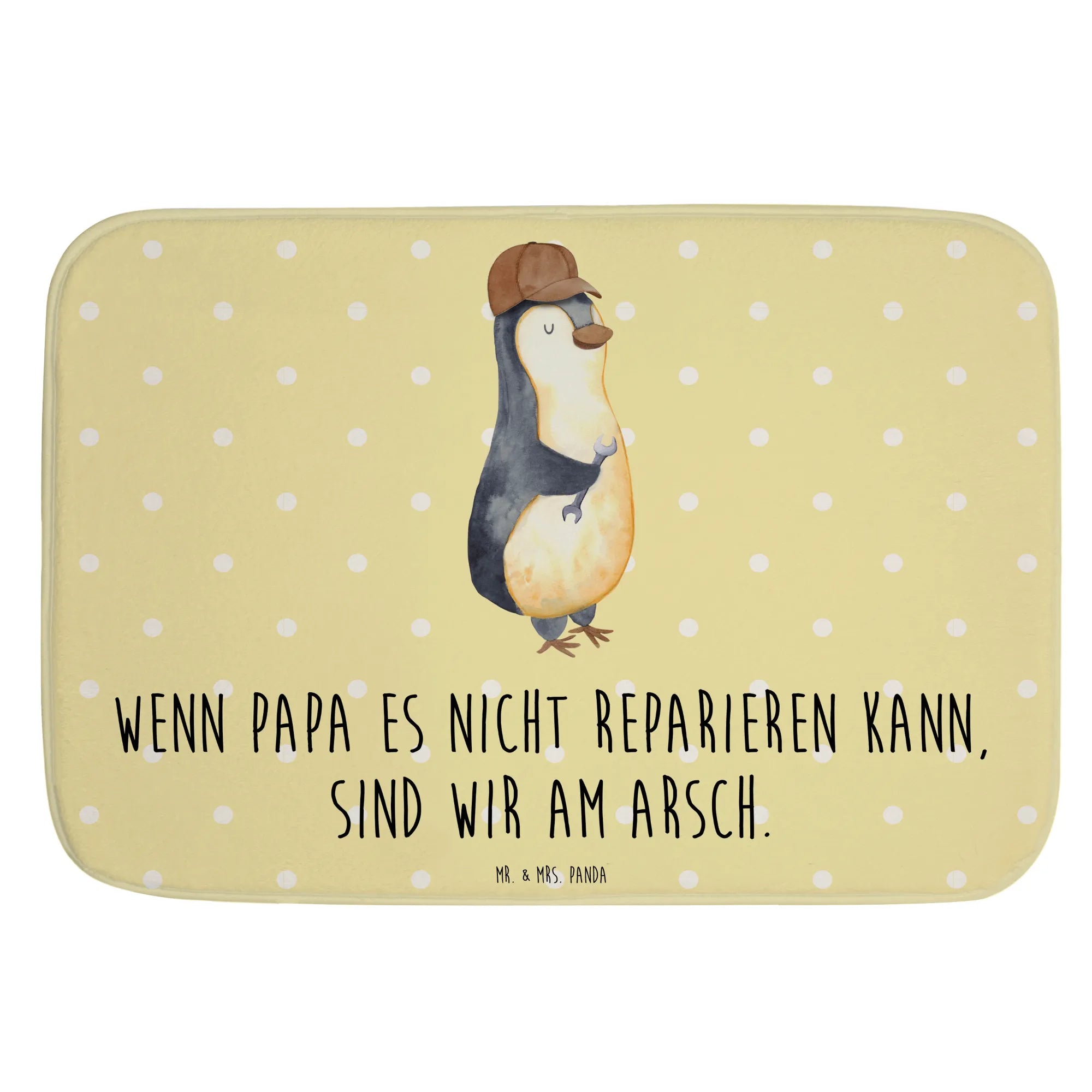 Du bist auf der Suche nach einem ganz besonderen Geschenk für Deinen Papa? Dann ist unser Badvorleger "Wenn Papa es nicht reparieren kann, sind wir am Arsch" genau das richtige für Dich! Dieser liebevoll gestaltete Badteppich aus der Familie-Kollektion von Mr. & Mrs. Panda bringt nicht nur ein Lächeln auf das Gesicht Deines Vaters, sondern sorgt auch für eine tolle Optik in jedem Badezimmer.