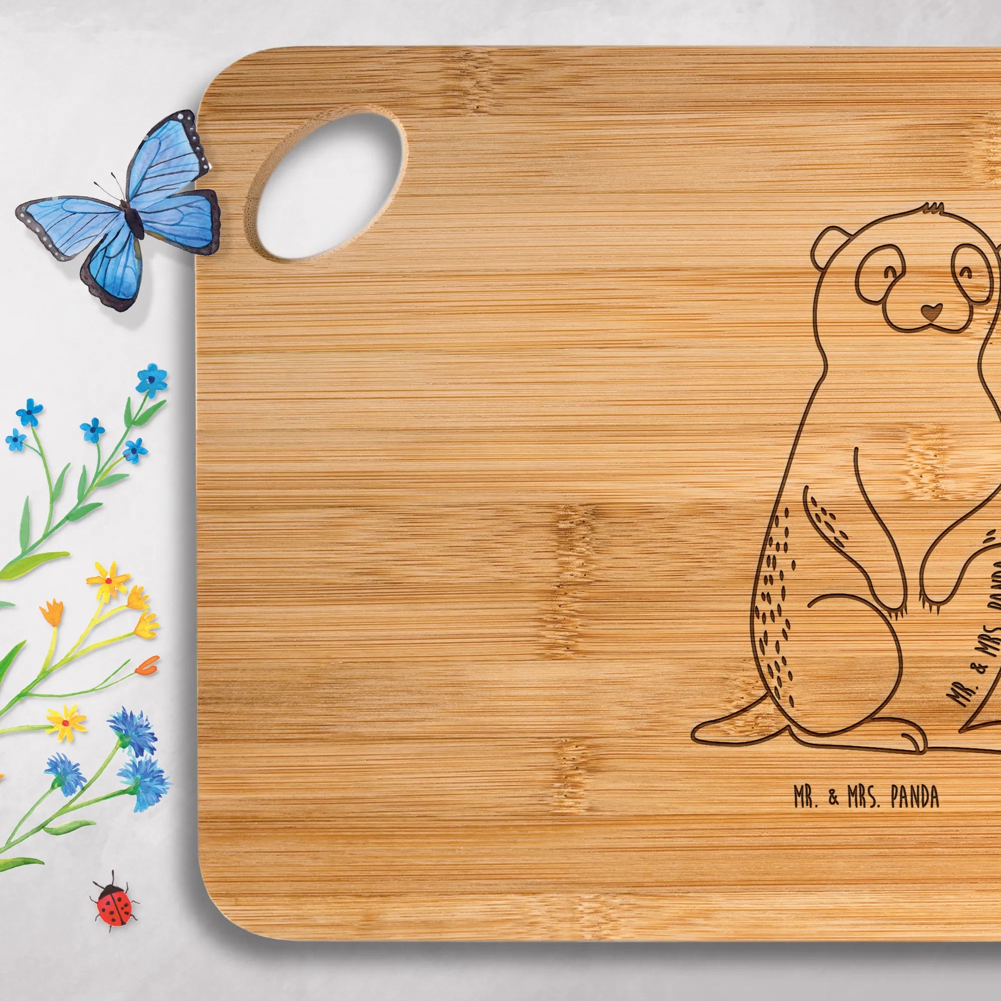 Hol dir jetzt dein liebevoll graviertes Schneidebrett von Mr. & Mrs. Panda – praktische Größe, zeitloses Design, Freude beim Zubereiten!