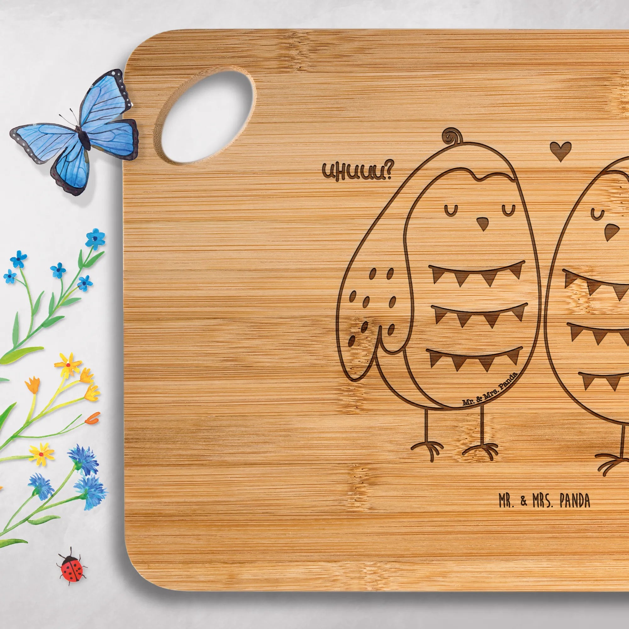 Gönn dir das bezaubernde Holzbrett von Mr. & Mrs. Panda – praktisch, robust und mit liebevoller Gravur!
