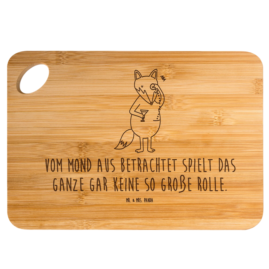 Unser Holzschneidebrett ist nicht nur praktisch, sondern erzählt eine kleine Geschichte: Ein stattlicher, niedlicher Fuchs mit Monokel blickt dich an, begleitet von dem tröstenden Spruch „Vom Mond aus betrachtet spielt das Ganze gar keine so große Rolle.“ Dieses Frühstücksbrettchen zaubert beim Frühstück, beim Vesper oder beim Käseabend ein Lächeln auf die Lippen und ist ein wunderbares Geschenk für viele Gelegenheiten.