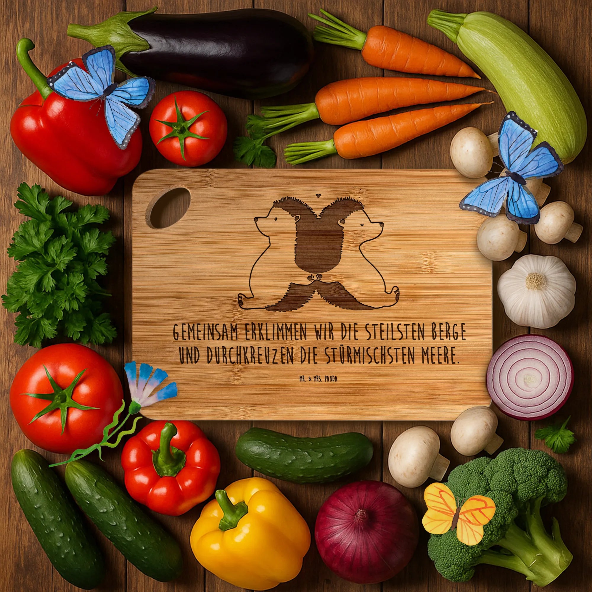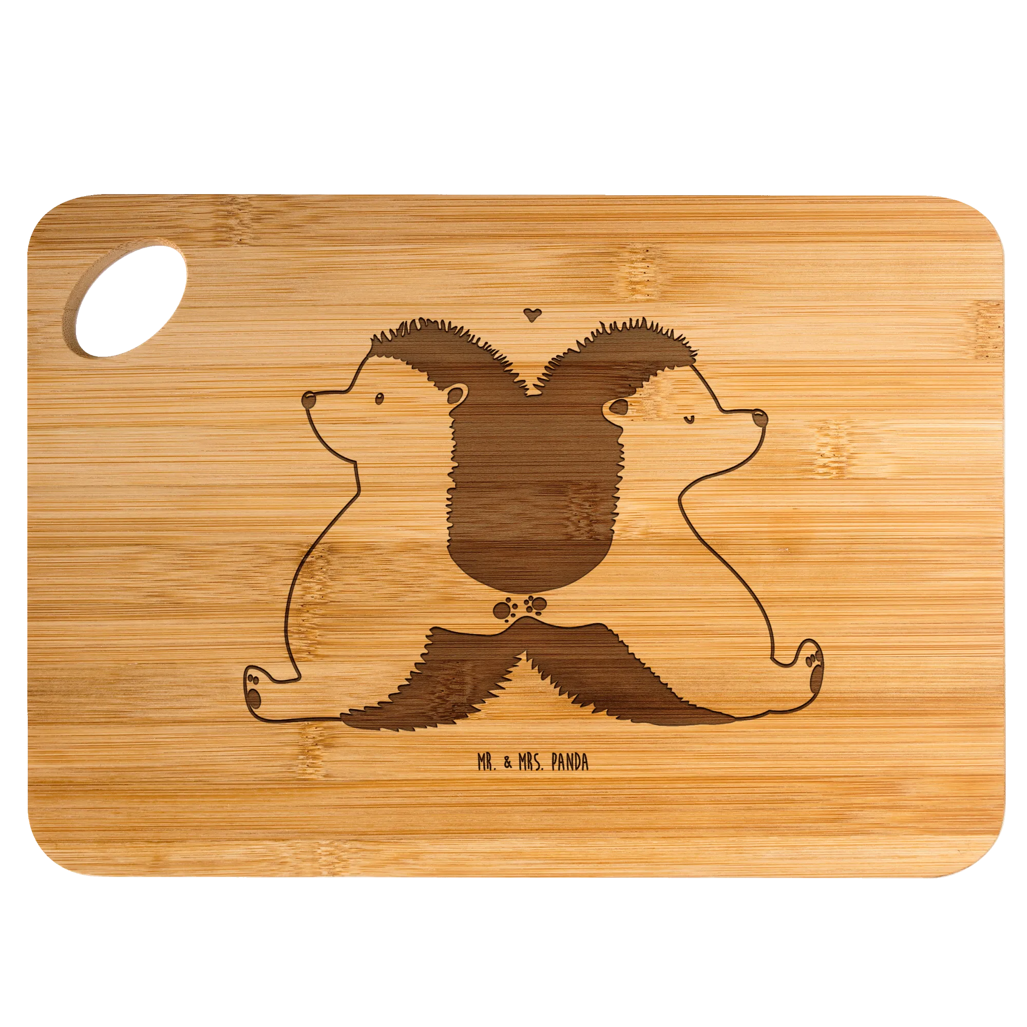 Bambus - Schneidebrett Igel händchenhaltend - mit Spruch