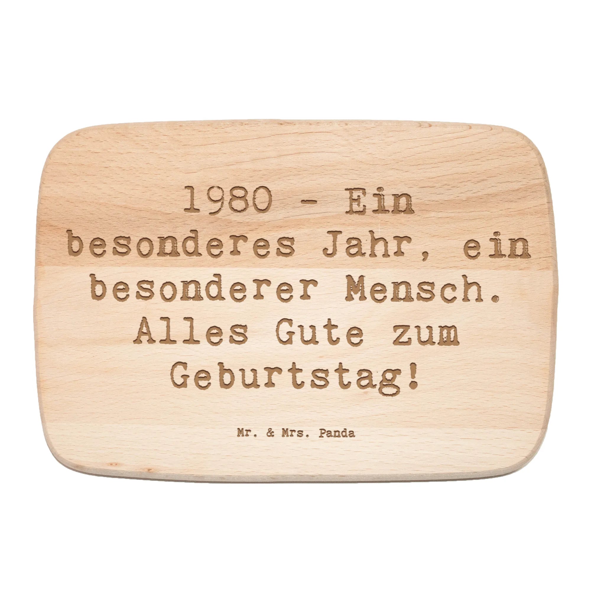 Das Frühstücksbrett 1980 von Mr. & Mrs. Panda ist mehr als nur ein Küchenutensil – es ist ein liebevolles Geschenk, das Erinnerungen weckt. Mit dem Slogan "1980 - Ein besonderes Jahr, ein besonderer Mensch. Alles Gute zum Geburtstag!" ist dieses Frühstücksbrettchen das perfekte Geschenk für all jene, die in diesem Jahr das Licht der Welt erblickt haben. Egal ob für Freunde, Familie oder Kollegen – jeder, der 1980 geboren wurde, wird sich über dieses persönliche Geschenk freuen.