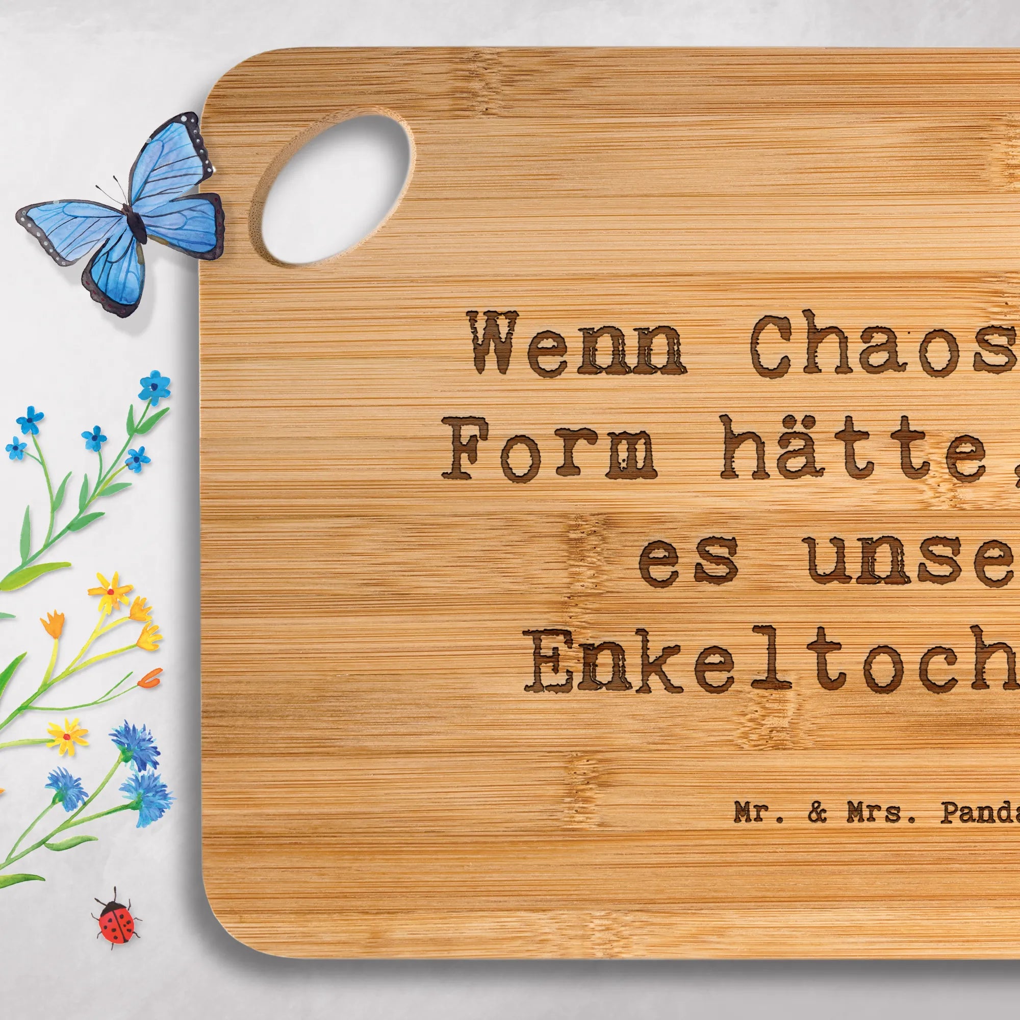 Entdecke das praktische Hackbrett von Mr. & Mrs. Panda – robust, hübsch graviert und sofort einsatzbereit in deiner Küche!