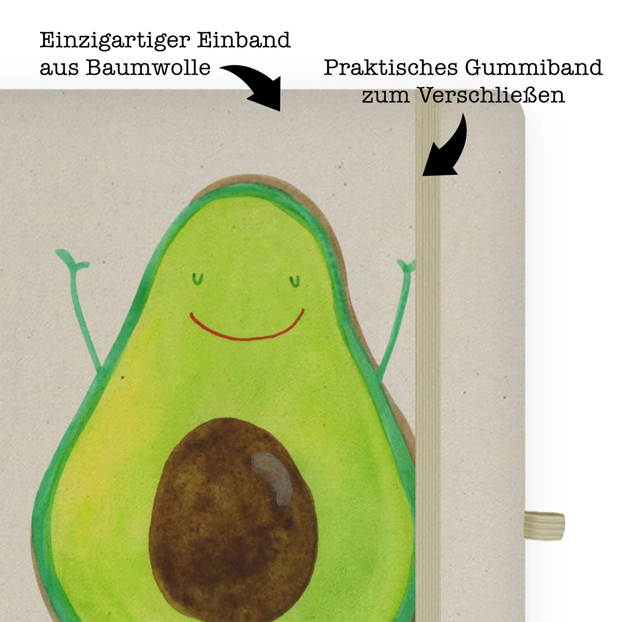 Das DIN A4 personalisierte Notizbuch mit dem fröhlichen Avocado Happy Motiv von Mr. & Mrs. Panda ist das perfekte Geschenk für alle, die ihre Gedanken, Ideen und Skizzen auf besondere Weise festhalten möchten. Egal, ob für einen Freund, ein Familienmitglied oder sogar für dich selbst - dieses Notizbuch bringt Freude in den Alltag.