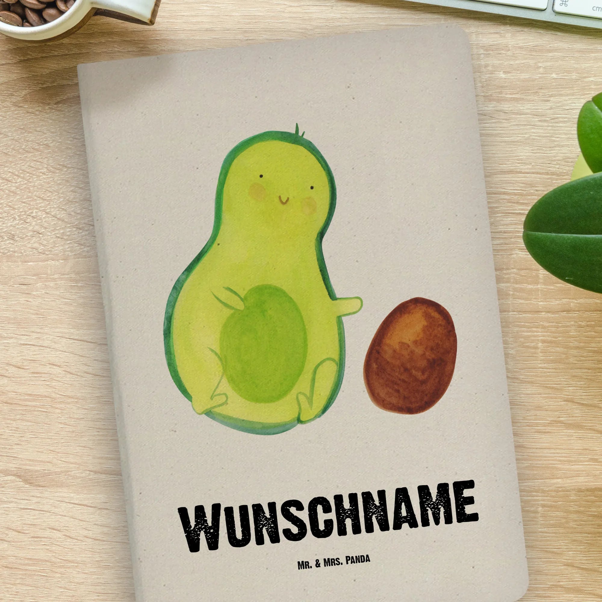 Das DIN A4 personalisierte Notizbuch "Avocado rollt Kern" von Mr. & Mrs. Panda ist der perfekte Begleiter für jeden, der seine Gedanken und Ideen festhalten möchte. Mit seinem liebevollen Design, das eine süße Avocado zeigt, die ihren Kern vor sich her rollt, zaubert dieses Notizbuch jedem ein Lächeln ins Gesicht.