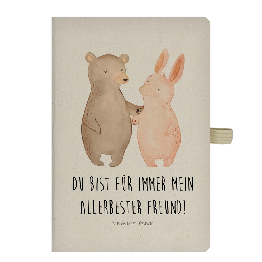 Das DIN A5 Baumwoll Notizbuch von Mr. & Mrs. Panda mit dem zauberhaften Motiv "Bär Hase Umarmen" ist das perfekte Geschenk für alle, die die Liebe im Herzen tragen. Ideal für deinen besten Freund oder deine beste Freundin, bringt dieses Notizbuch die besten Gefühle zum Ausdruck. Stell dir vor, du schreibst deine Gedanken und Ideen nieder, während du von einem süßen Bärchen und einem Hase umarmt wirst – einfach himmlisch!