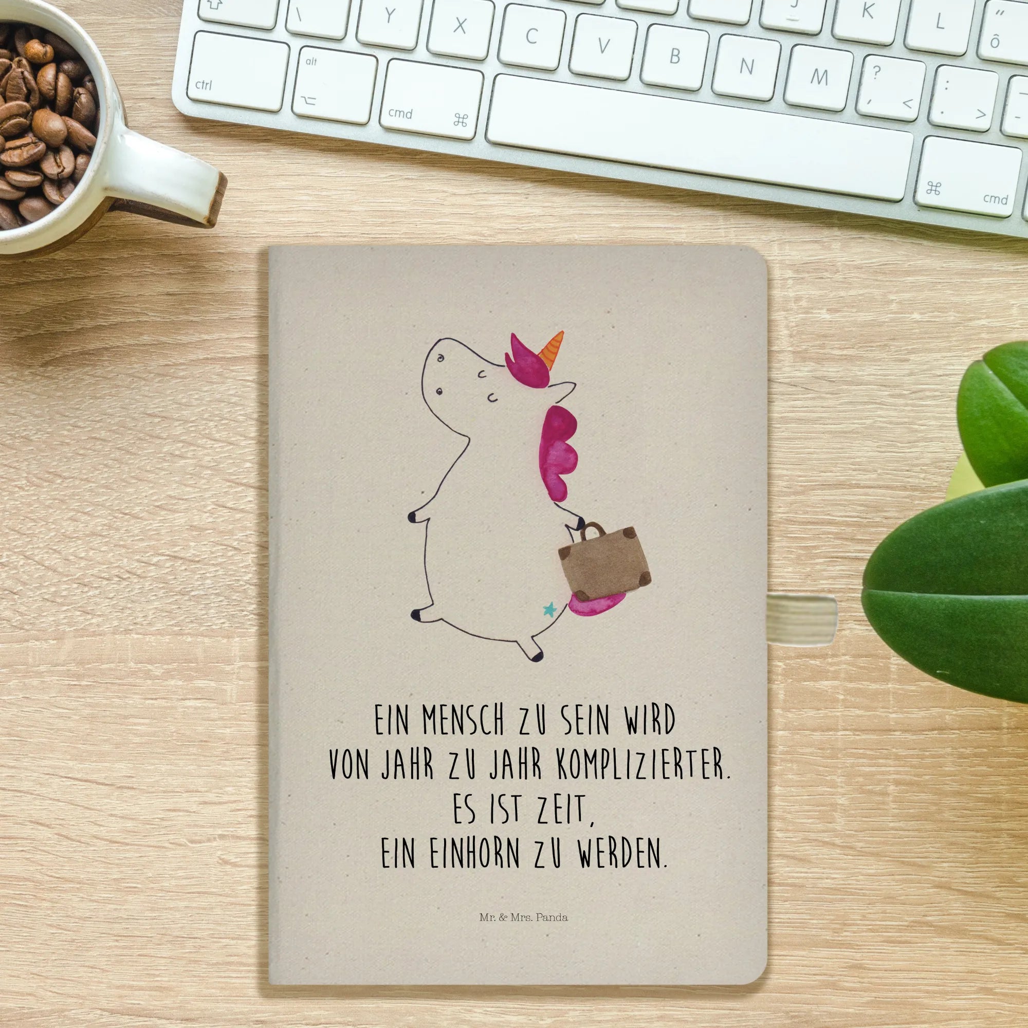 Baumwoll Notizbuch Einhorn Koffer - DIN A4 Baumwoll Notizbuch - mit Spruch
