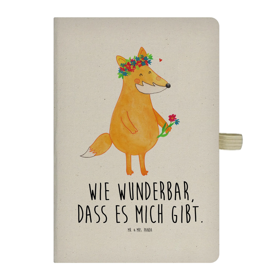 Baumwoll Notizbuch Fuchs Blumenliebe - DIN A4 Baumwoll Notizbuch - mit Spruch