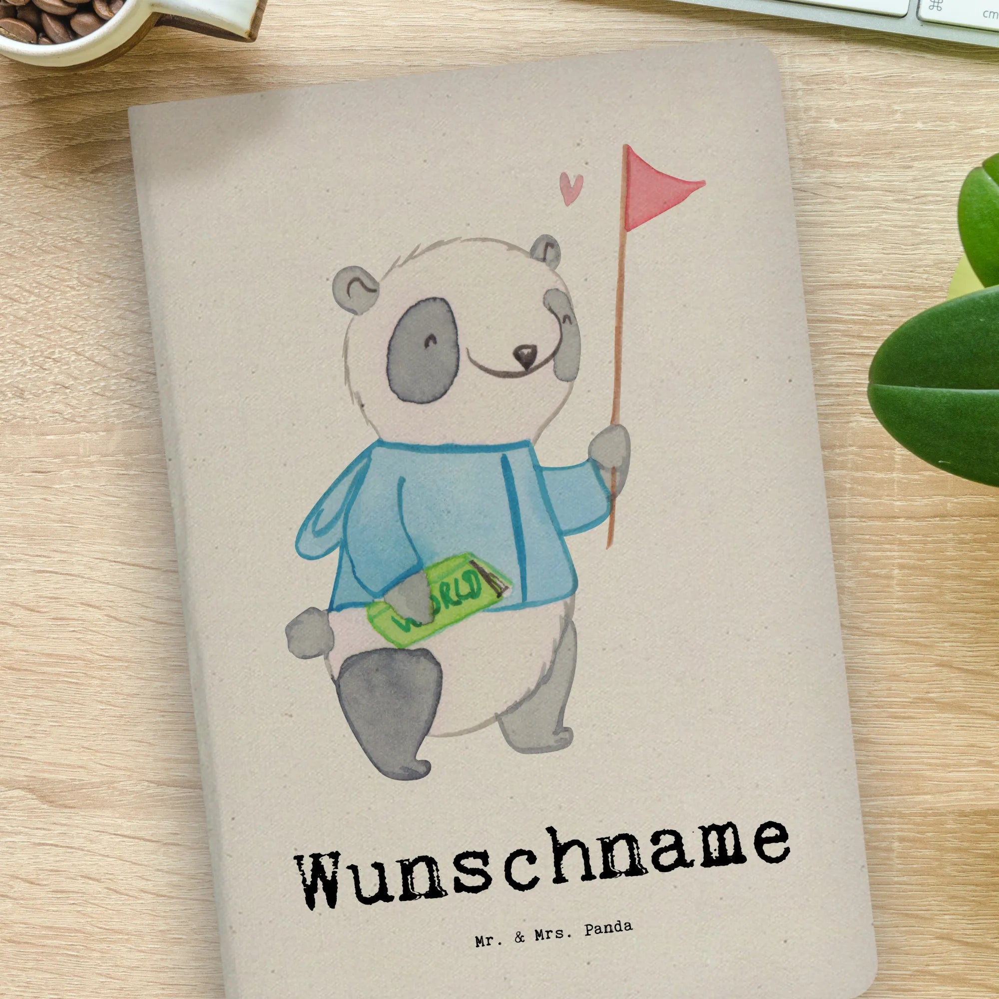 Das DIN A4 personalisierte Notizbuch "Reiseleiter mit Herz" aus der Kollektion Berufe von Mr. & Mrs. Panda ist das perfekte Geschenk für alle Reiseleiter und Reiseleiterinnen. Ob zum Berufseinstieg, zur Beförderung oder zum Jubiläum – dieses Notizbuch ist immer eine herzerwärmende Erinnerung an einen besonderen Beruf und ein toller Begleiter für alltägliche Notizen und Gedanken.