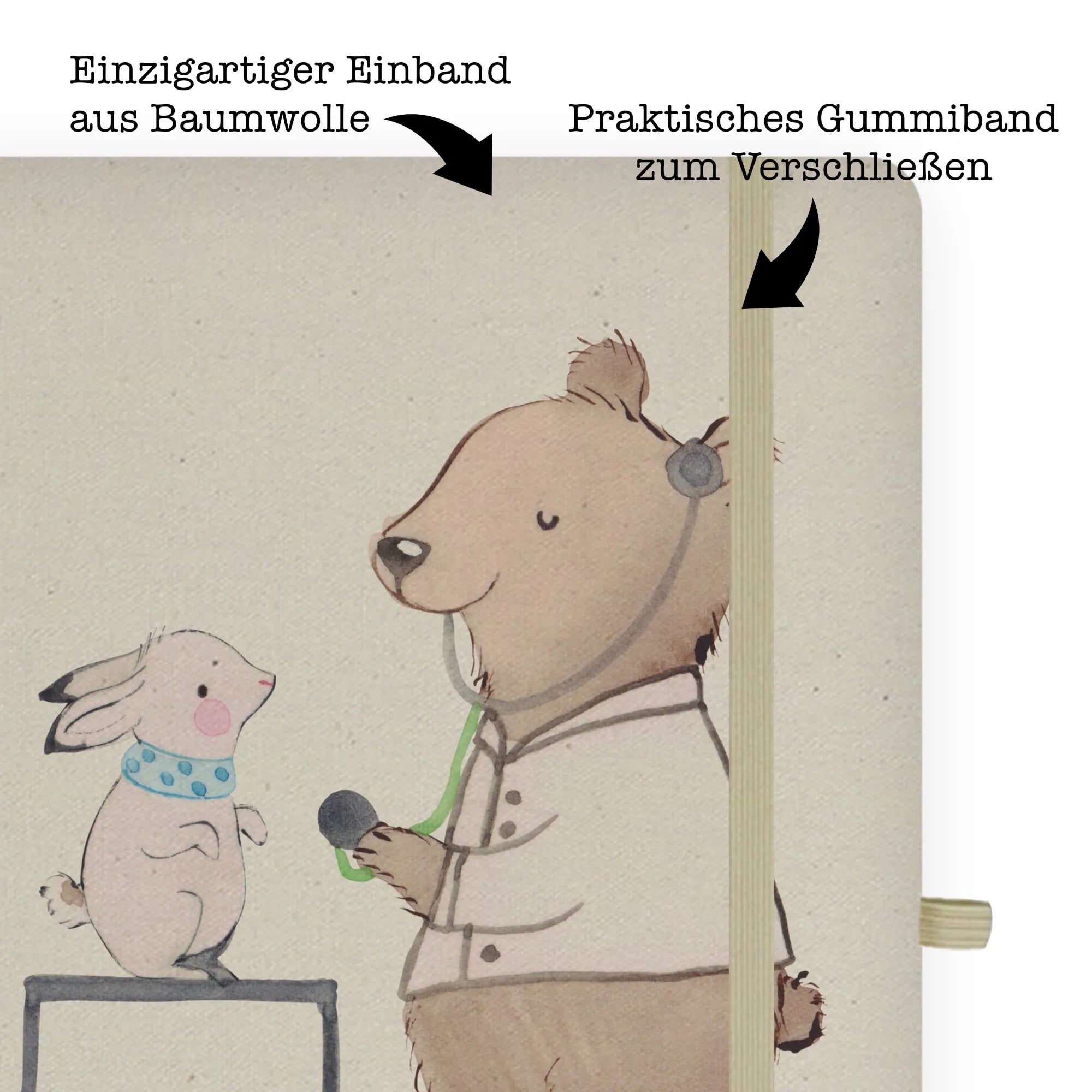 Die Motive wurden liebevoll von Mrs. Panda mit Aquarelltechnik handgezeichnet, und der süße Bär in weißem Kittel, der einem Kaninchen hilft, bringt den Beruf des Tierheilpraktikers perfekt zum Ausdruck.