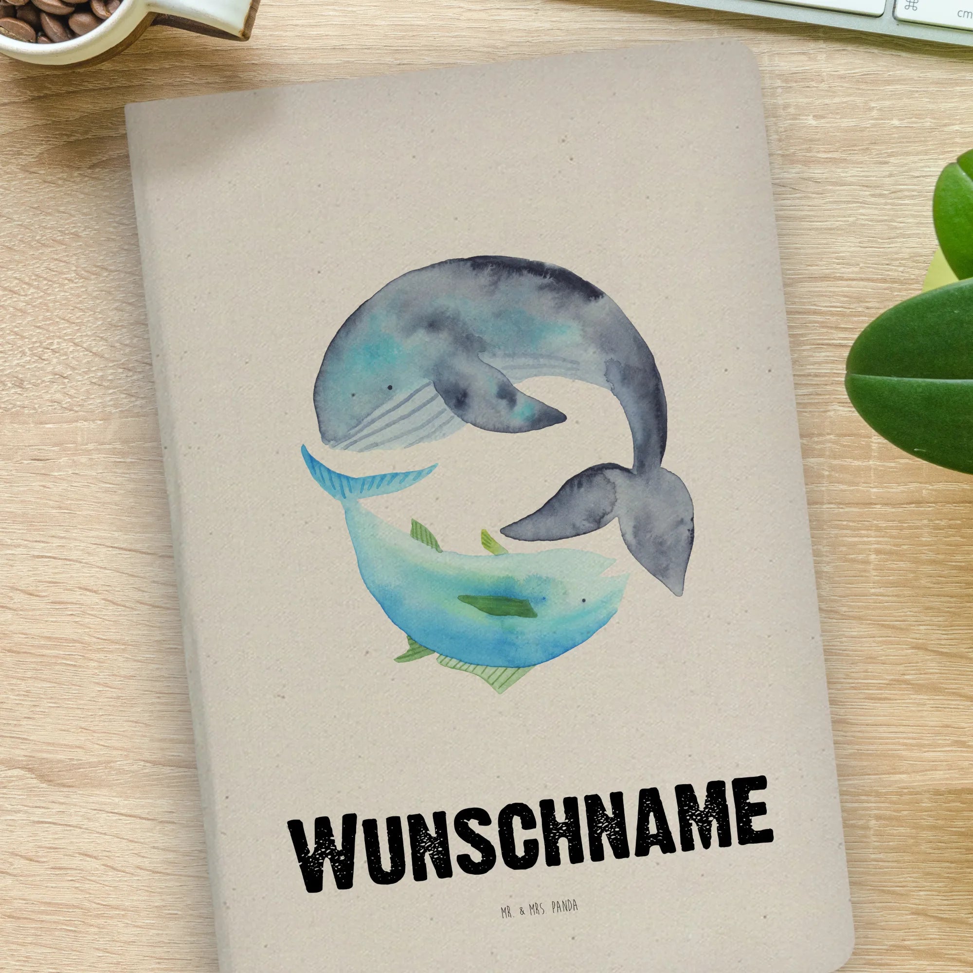 Das personalisierte Notizbuch mit dem witzigen Motiv des Walfischs und Thunfischs aus der Kollektion Small World ist das perfekte Geschenk für alle, die ihre kreativsten Gedanken und Ideen festhalten möchten.