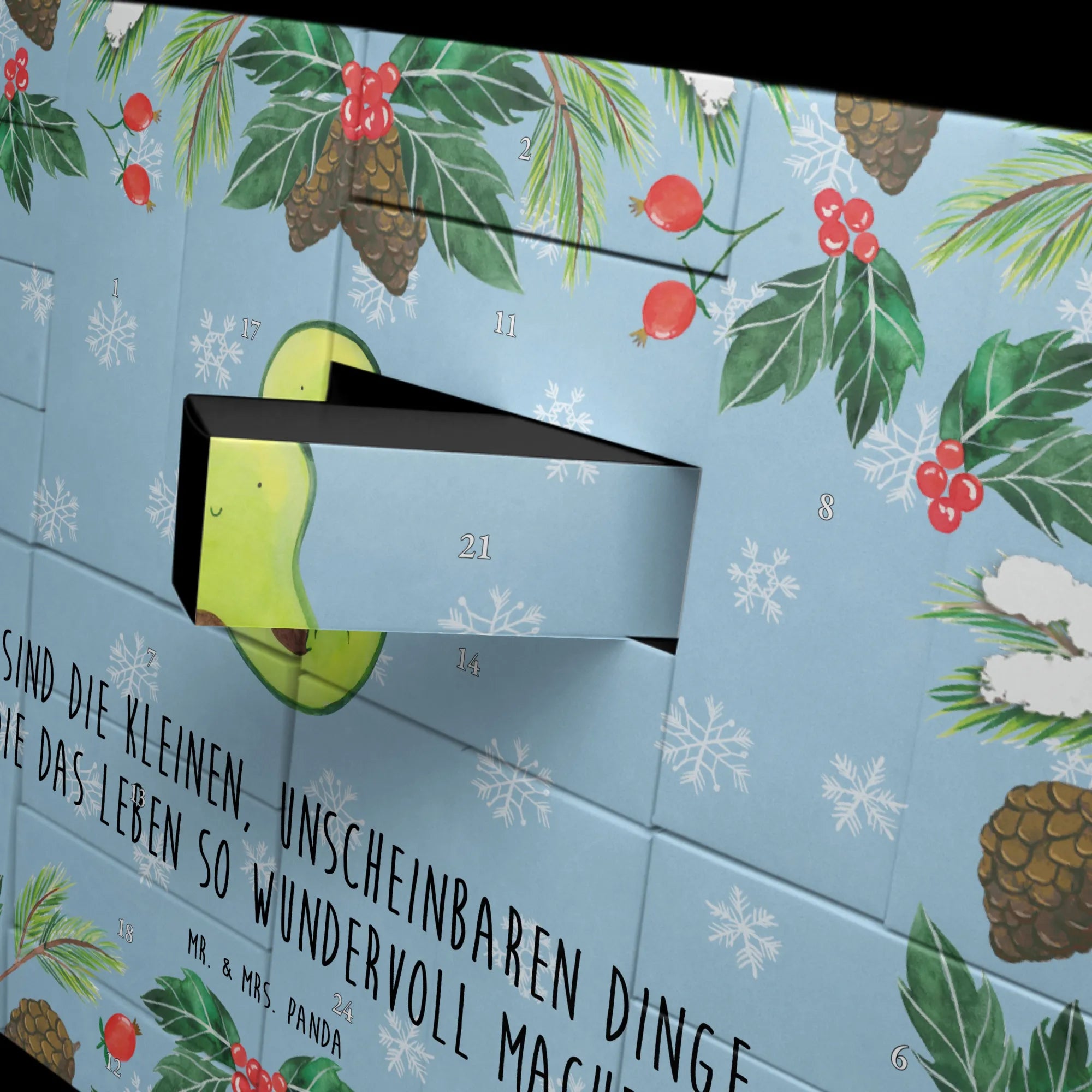 Suchst du ein herzliches, fröhliches Adventserlebnis? Unser befüllbarer Adventskalender „Avocado mit Kern" von Mr. & Mrs. Panda vereint liebevolle Illustration, positiven Spruch und praktischen Nutzen. Handgezeichnet von Mrs. Panda zeigt die kleine Avocado, wie wunderbar die einfachen Dinge sind. Der Slogan "Es sind die kleinen, unscheinbaren Dinge, die das Leben so wundervoll machen." macht den Kalender zu einem täglich inspirierenden Begleiter in der Vorweihnachtszeit.