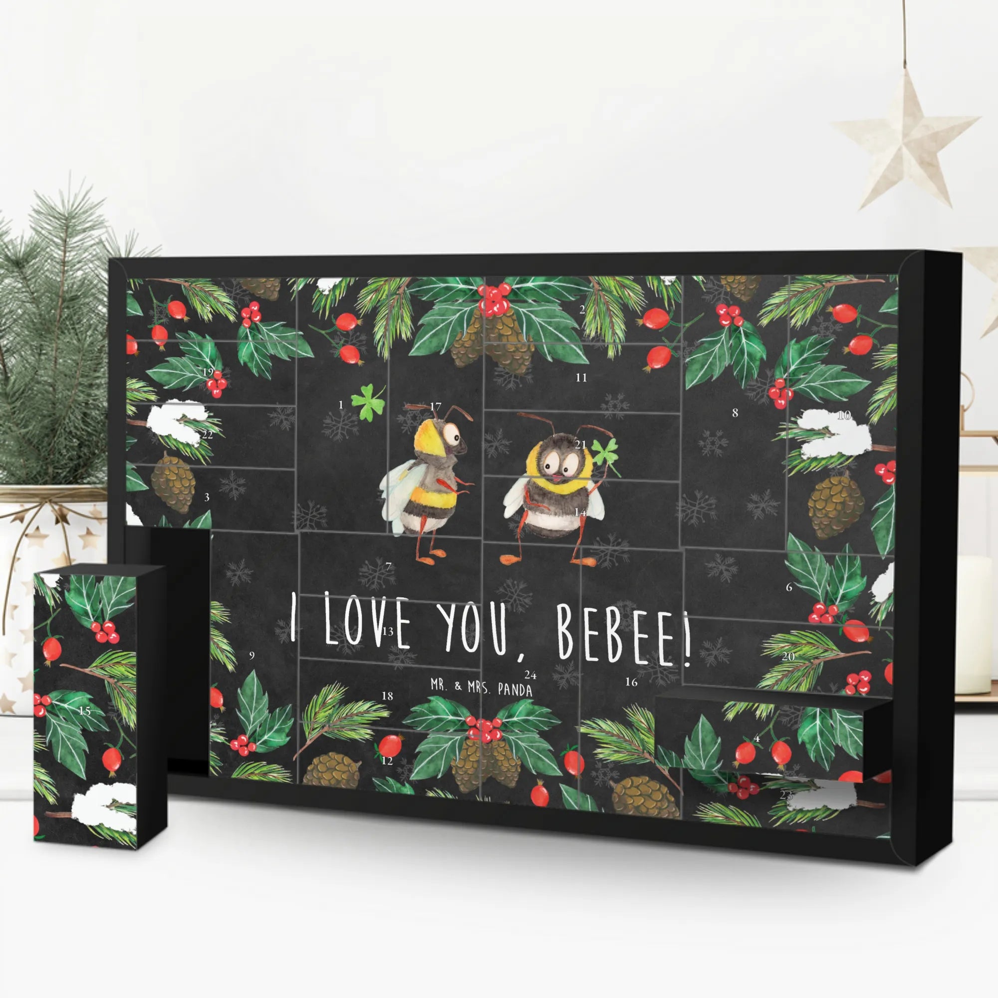 Der befüllbare Adventskalender im süßen Bienen-Paar-Motiv von Mr. & Mrs. Panda ist das perfekte Geschenk für alle, die die Liebe feiern wollen. Ob als originelles Mitbringsel zum Valentinstag, den Hochzeitstag oder als Liebesgeschenk zum Jahrestag, dieser Adventskalender ist ein liebevolles Highlight, das Herzen höherschlagen lässt. Die liebevolle Zeichnung von Mrs. Panda zeigt zwei entzückende Bienen, die bereit sind, die Vorfreude auf die besinnliche Zeit jeden Tag zu versüßen. Mit motivierenden Sprüchen wie 'I love you, bebee!' und einer strahlenden, positiven Ausstrahlung verbinden die Bienen das Vergnügen des Auspackens mit der Zuneigung zu deinem Partner oder deiner Partnerin.