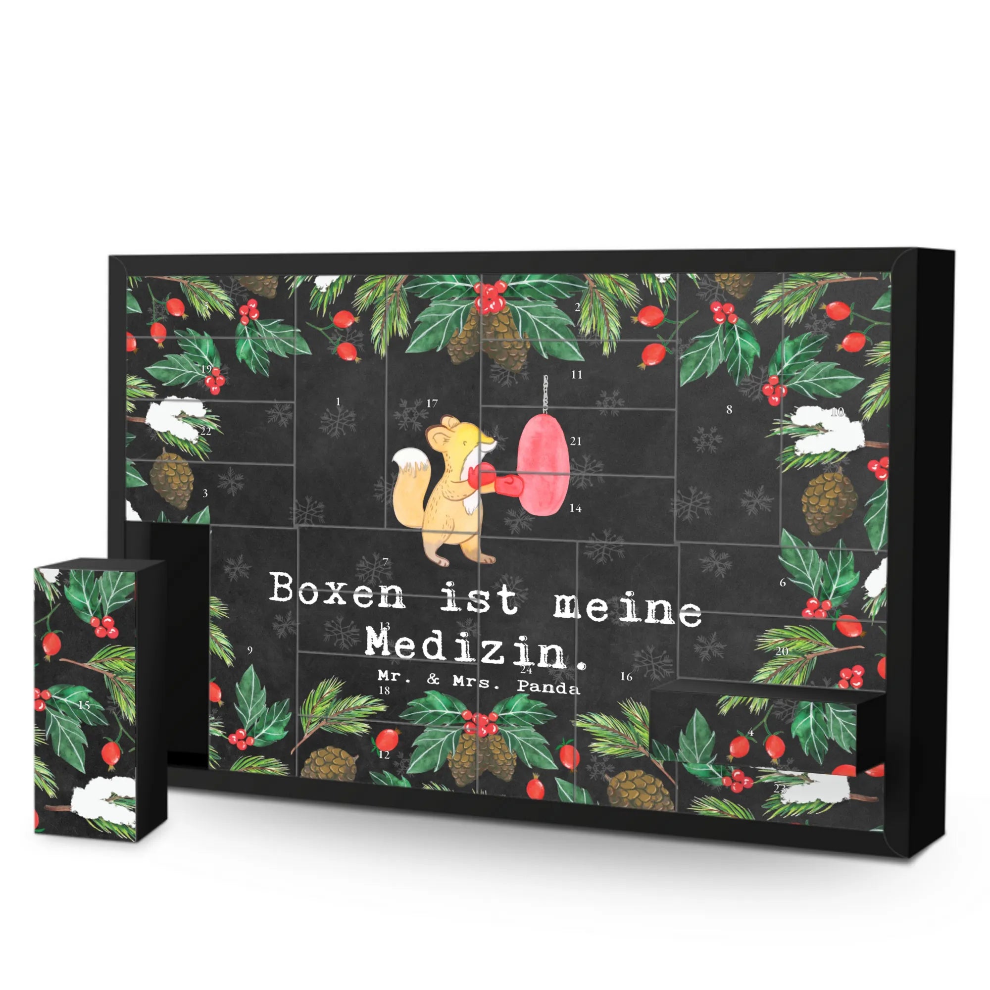 Der wunderschöne bef fillbare Adventskalender mit dem niedlichen Motiv "Fuchs Boxen Medizin" von Mr. & Mrs. Panda ist das perfekte Geschenk für alle Sportbegeisterten und Hobby-Fans!