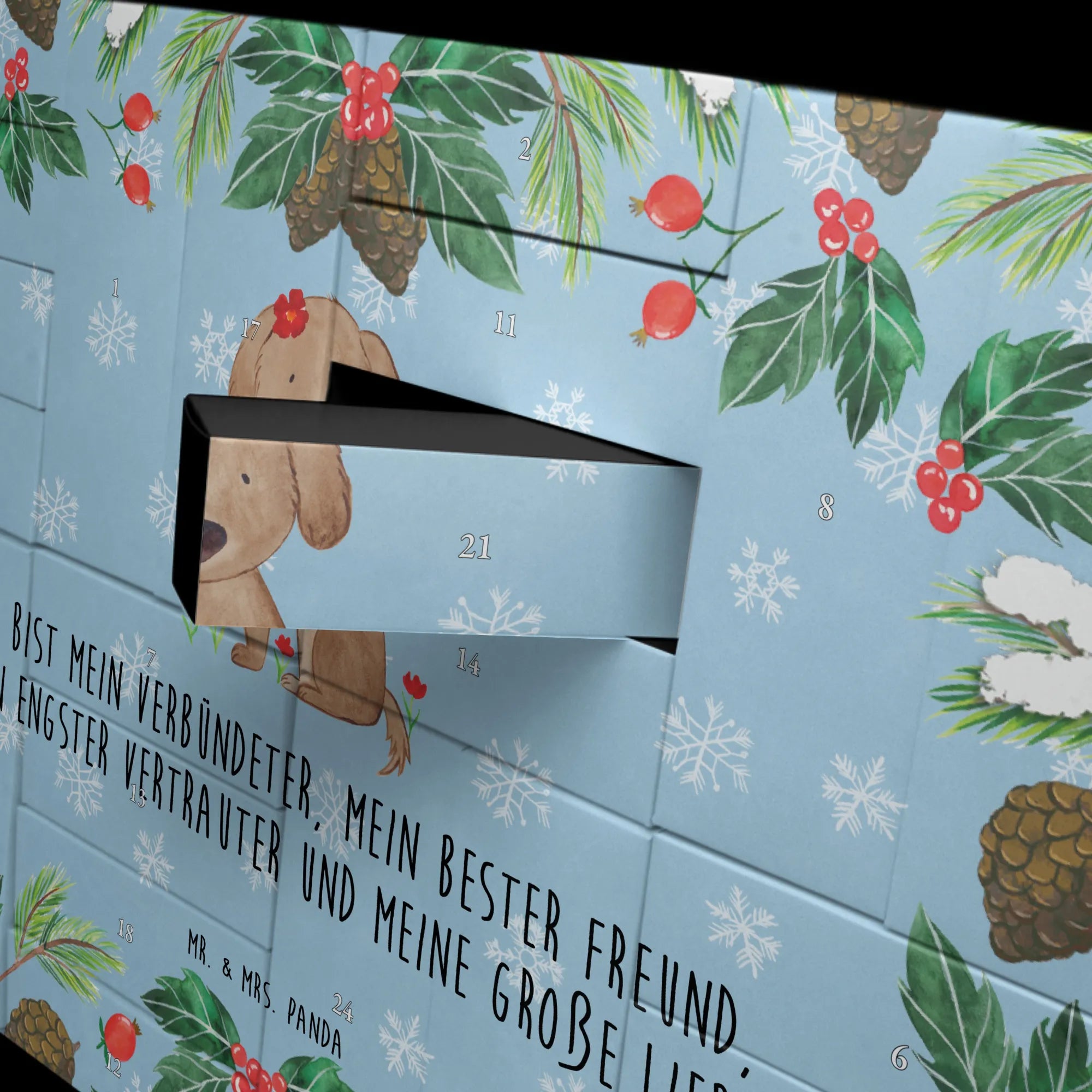 Mit dem Spruch 'Du bist mein Verbündeter, mein bester Freund, mein engster Vertrauter und meine große Liebe.' auf der Vorderseite entfaltet dieser Adventskalender eine liebevolle Botschaft, die die besondere Beziehung zwischen Mensch und Hund zum Ausdruck bringt. Ein ideales Geschenk für Hundeeltern oder junge Hundebesitzer, der mit Sicherheit ein Lächeln ins Gesicht zaubert.