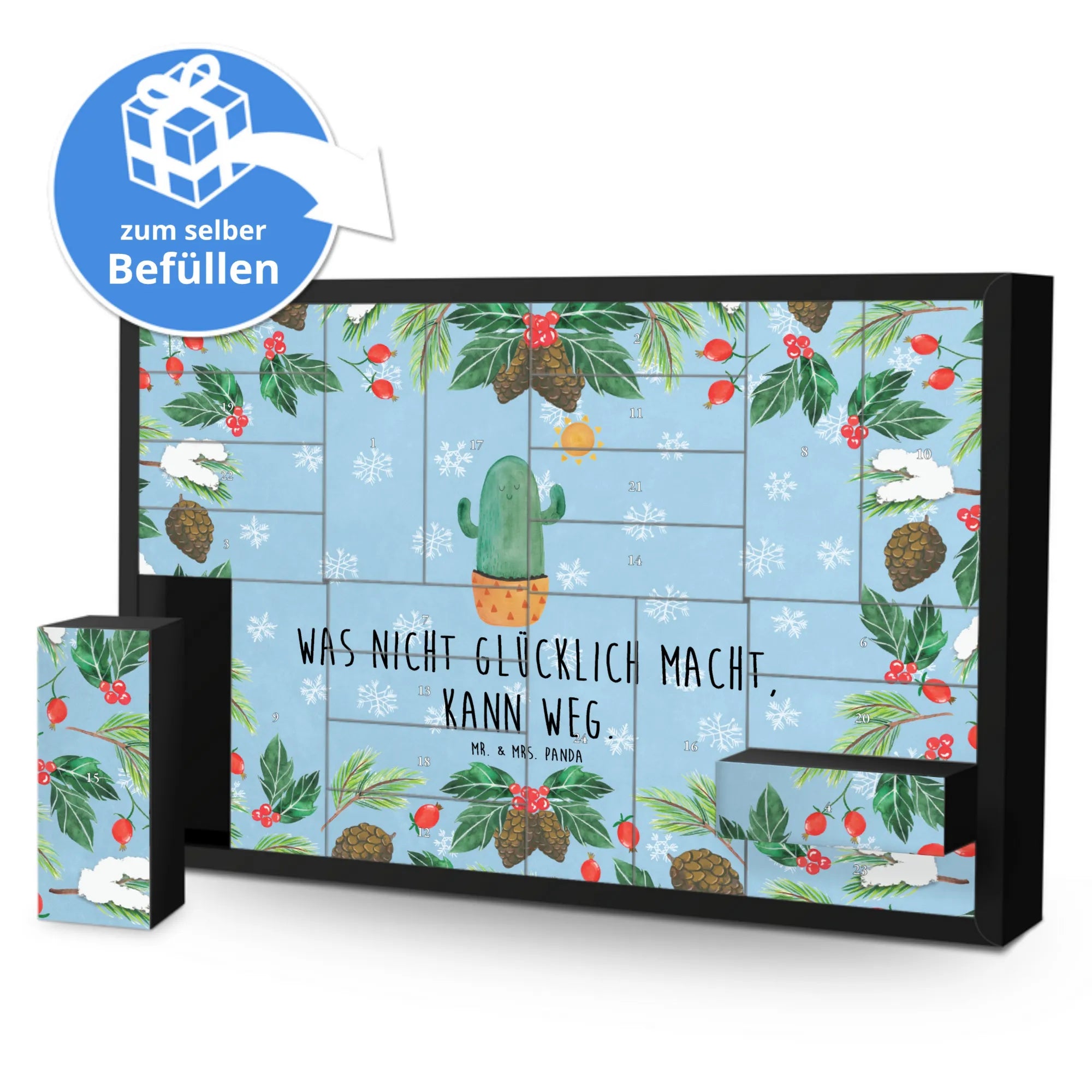Mach diese Adventszeit zu etwas ganz Besonderem mit dem wundervollen, befüllbaren Adventskalender aus der Kaktus-Kollektion von Mr. & Mrs. Panda. Der Adventskalender, bedruckt mit fröhlichen Kaktus-Motiven und dem motivierenden Spruch 'Was nicht glücklich macht, kann weg.', ist die perfekte Geschenkidee für Freunde, Familie und Dich selbst.