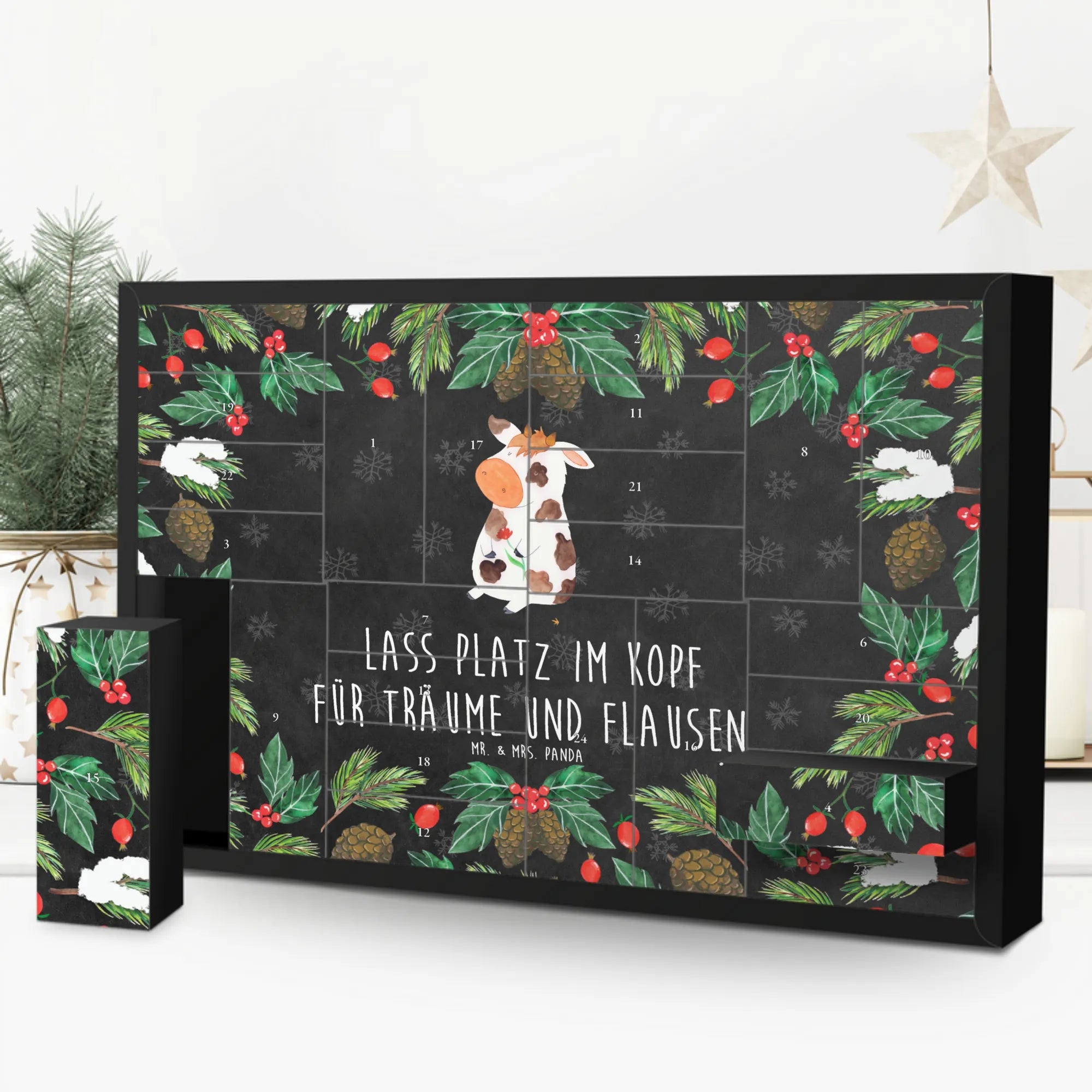 Willkommen in der zauberhaften Welt des Befüllbaren Adventskalenders von Mr. & Mrs. Panda! Dieser wunderschöne Adventskalender mit dem süßen Kuh-Motiv ist nicht nur ein echter Hingucker, sondern auch das perfekte Geschenk für alle, die den Bauernhof und seine charmanten Tiere lieben. Die liebevolle Zeichnung von Mrs. Panda verleiht dem Kalender einen ganz besonderen Flair und lässt das Herz jedes Tierfreundes höher schlagen.