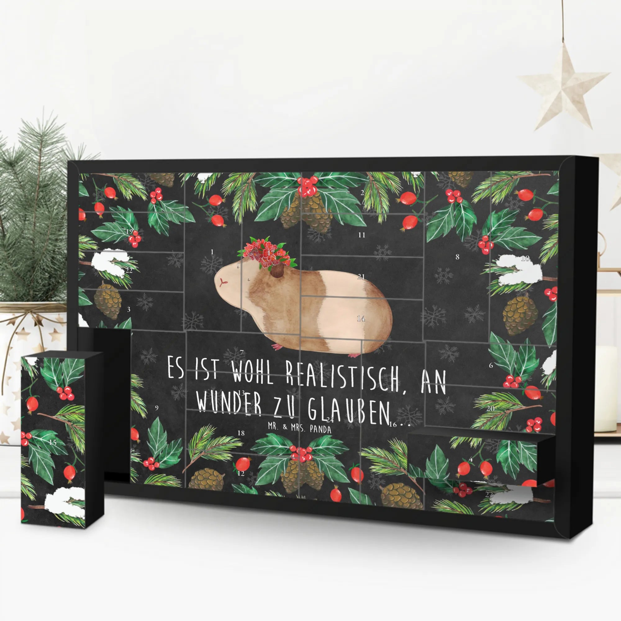 Das süße Meerschweinchen-Motiv, das von Mrs. Panda handgezeichnet wurde, trägt den liebevollen Slogan "Es ist wohl realistisch, an Wunder zu glauben..." und erinnert uns daran, die täglichen Wunder des Lebens zu schätzen. Ideal als Geschenk für Freunde oder Familie, die in der Adventszeit etwas Aufheiterung und Inspiration benötigen! Die Kombination aus dem lustigen Spruch und dem niedlichen Tiermotiv macht diesen Kalender zu einem echten Highlight in der Vorweihnachtszeit.