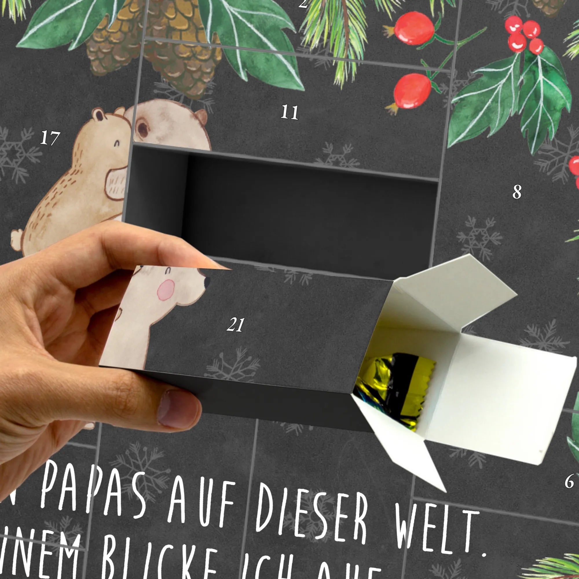 Der befllbare Adventskalender mit dem zauberhaften Motiv Papa Bär von Mr. & Mrs. Panda ist das perfekte Geschenk, um Papa, Vati, oder Onkel an besonderen Anlässen zu feiern. Egal ob zum Vatertag, Geburtstag oder einfach um Dankbarkeit zu zeigen - dieser Adventskalender ist für all die lieben Väter da draußen ein liebevolles Zeichen der Verbundenheit.