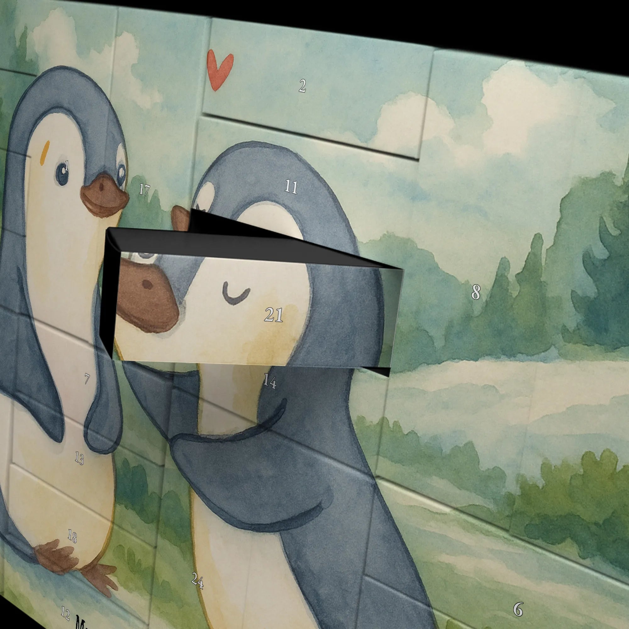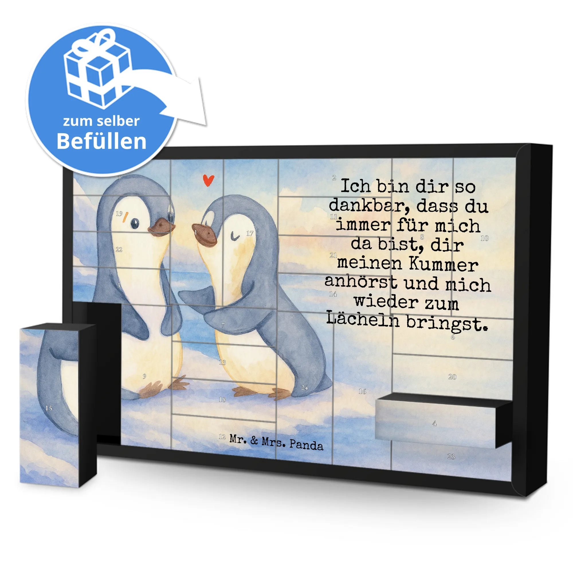 Befüllbarer Adventskalender Pinguine trösten Design - mit Spruch
