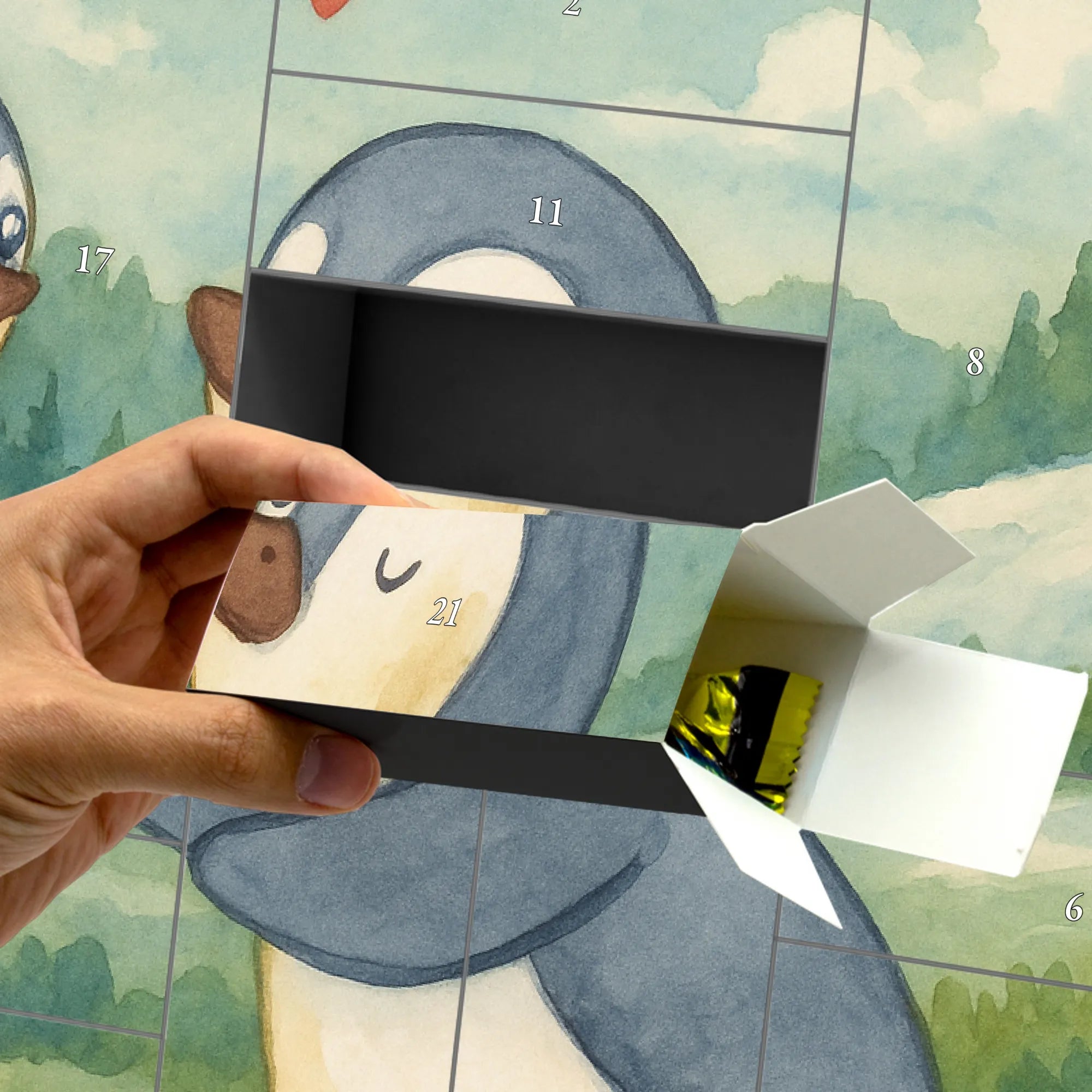 🐼 Adventskalender mit auffälliger Zeichnung und seidenmatter Oberfläche.
