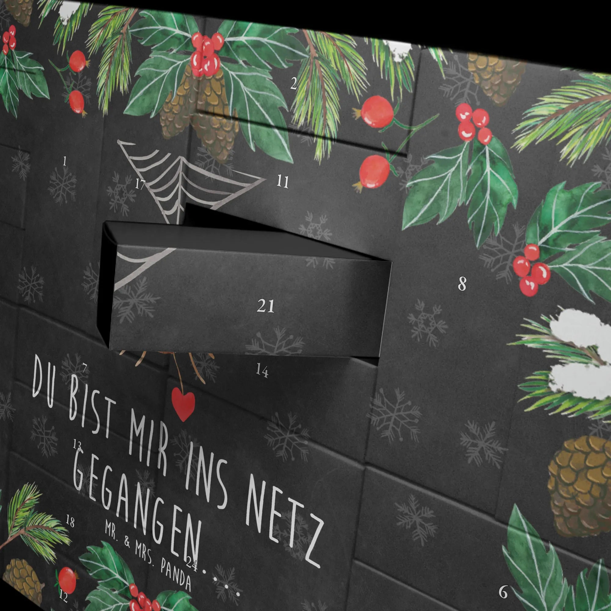 Der befüllbare Adventskalender Spinne Agathe Liebe von Mr. & Mrs. Panda ist das perfekte Geschenk für all jene, die die Liebe in all ihren Facetten feiern möchten. In der Adventszeit schwerlich etwas Schöneres vorstellen, als jeden Tag mit kleinen Überraschungen für die Liebsten gefüllt zu sein. Ob für Deinen Partner, Deine beste Freundin oder als süßes Geschenk für die Familie – dieser Kalender ist die ideale Wahl für alle, die mit viel Liebe und Kreativität die Vorweihnachtszeit erleben wollen. Agathe, die süße Spinne aus der Mr. & Mrs. Panda Kollektion, stellt das Herzstück dieses Adventskalenders dar. Mit dem liebevollen Spruch "Du bist mir ins Netz gegangen...." fängt sie die romantische Stimmung perfekt ein.