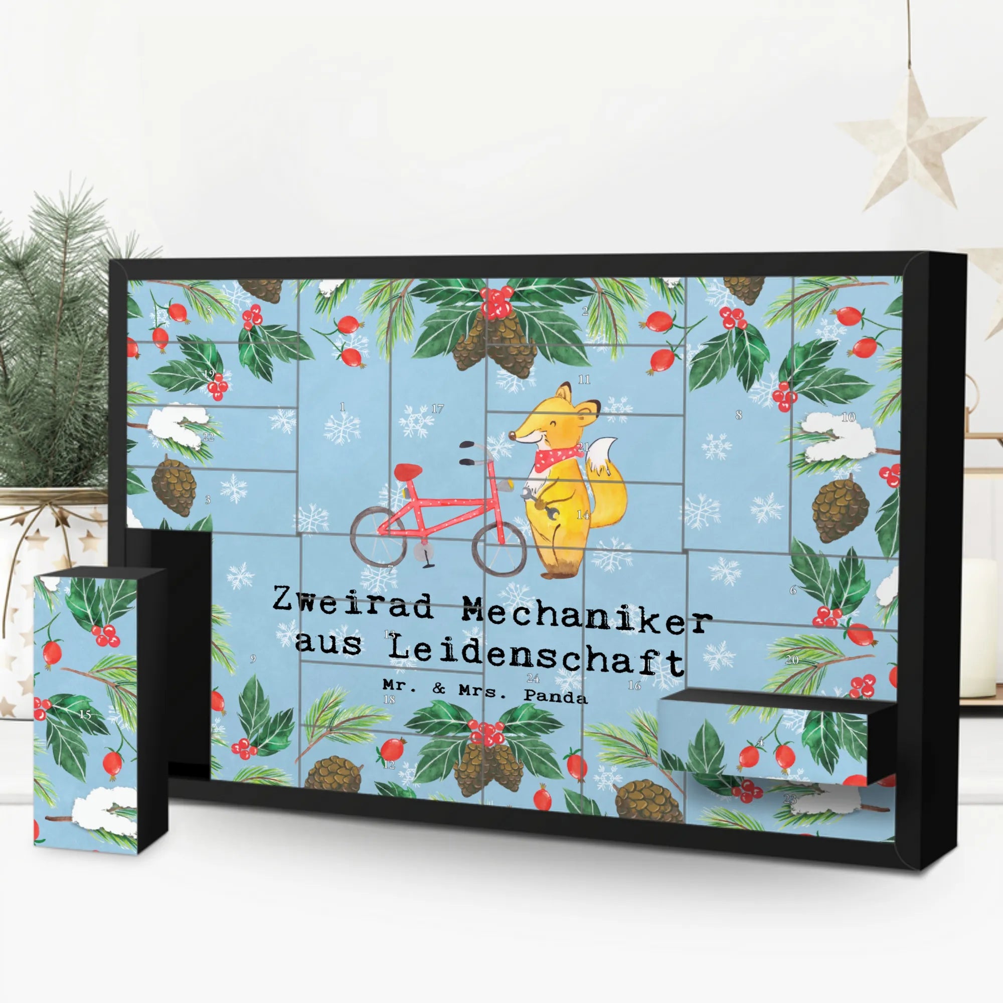 Der Befüllbare Adventskalender "Zweirad Mechaniker aus Leidenschaft" von Mr. & Mrs. Panda ist das perfekte Geschenk für alle, die in der Zweiradbranche tätig sind oder einfach eine Leidenschaft für Fahrräder haben. Mit seiner liebevollen Zeichnung eines süßen Fuchses, der stolz an einem Fahrrad schraubt, bringt dieser Adventskalender Freude in die Vorweihnachtszeit. Die besondere Note dieses Kalenders ist der inspirierende Slogan "Zweirad Mechaniker aus Leidenschaft", der jedem Zweirad-Mechaniker ein Lächeln ins Gesicht zaubert.