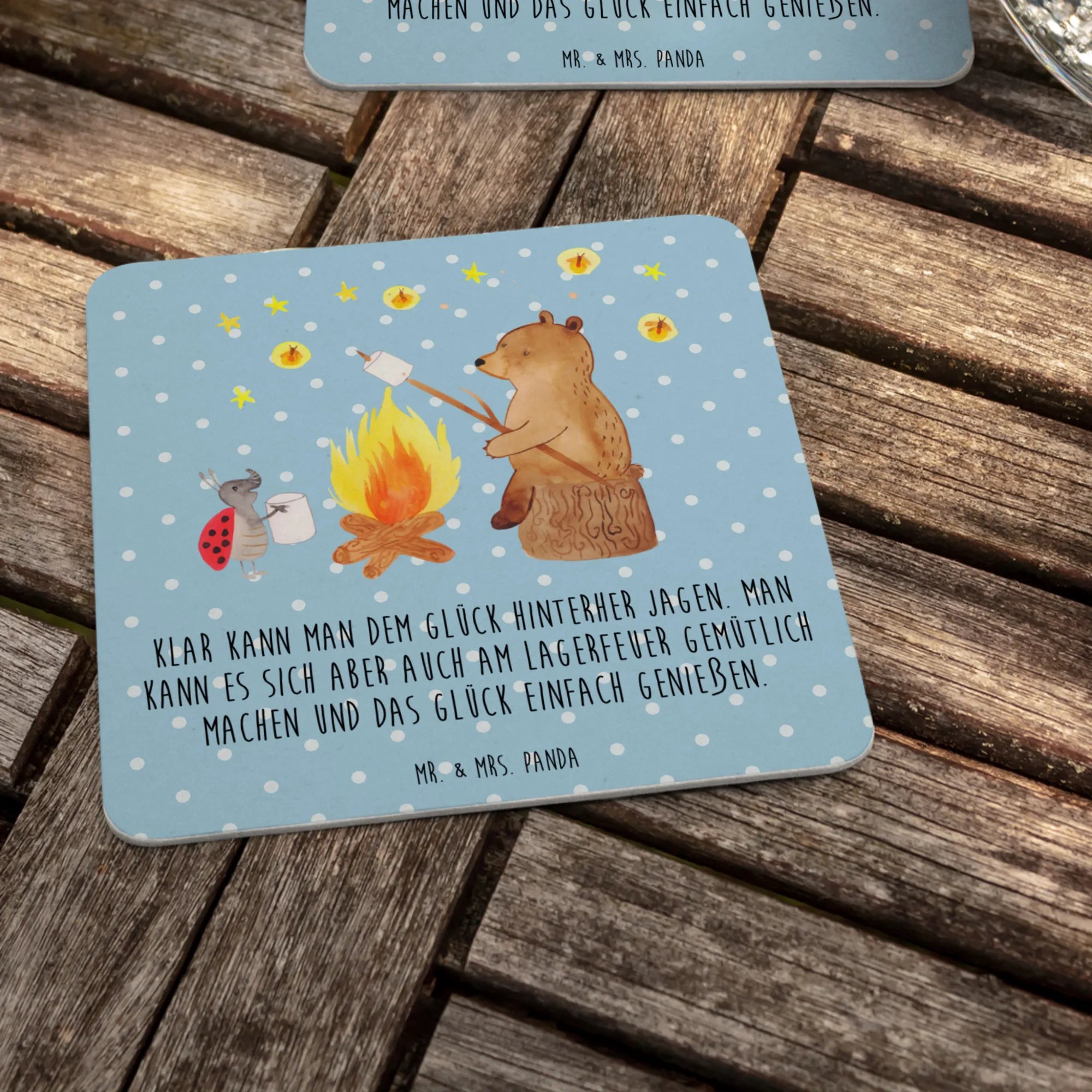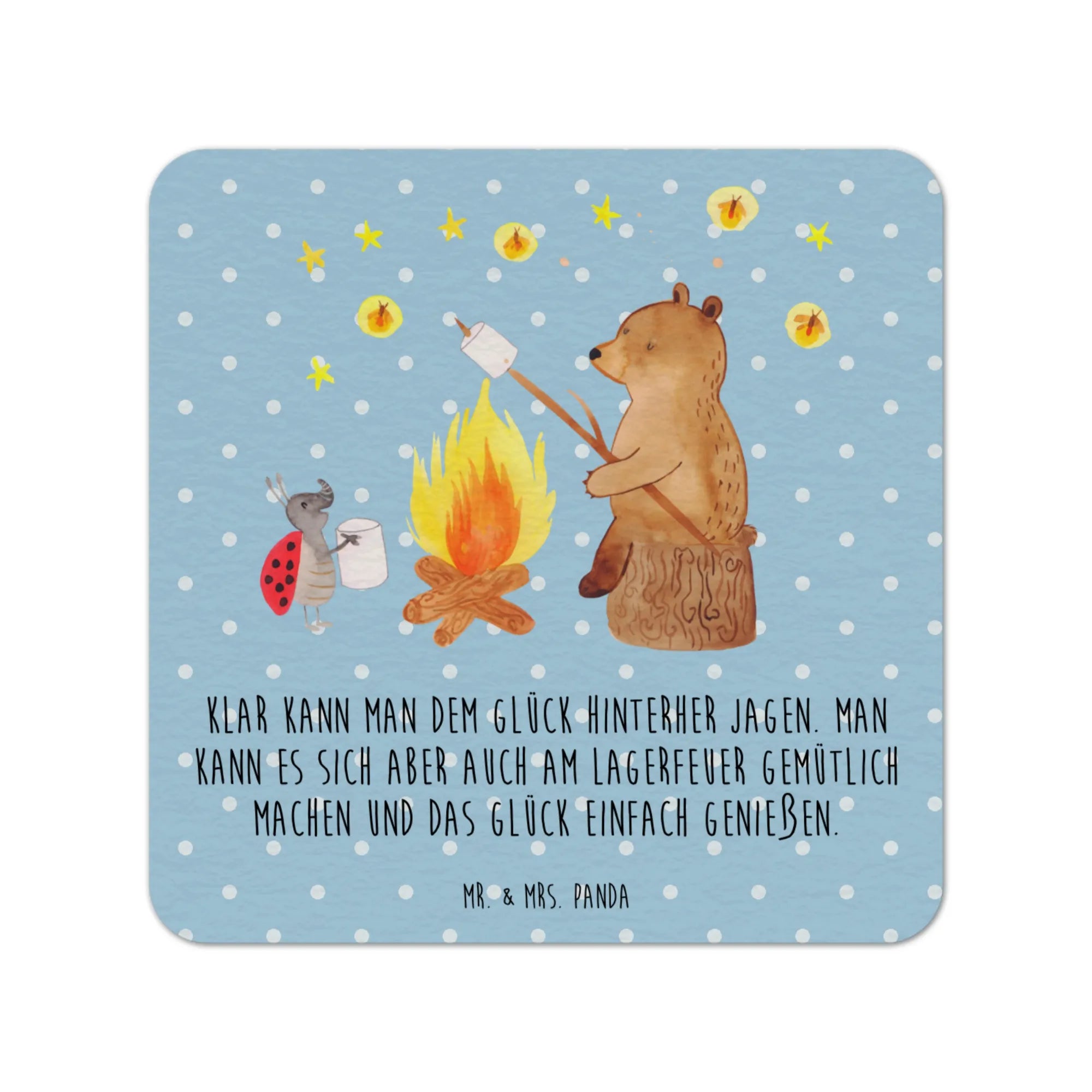Bierdeckel Bär & Marienkäfer Lagerfeuer von Mr. & Mrs. Panda ist nicht nur ein gewöhnlicher Tischuntersetzer, sondern ein wahrhaft besonderes Accessoire für all deine Festlichkeiten! Die niedliche Darstellung eines Bären und eines Marienkäfers, die gemeinsam am Lagerfeuer sitzen, zaubert jedem ein Lächeln ins Gesicht. Während der Bär genüsslich ein Marshmallow über die Flammen hält und der Marienkäfer an einem Eimer anlehnt, verbreitet dieses liebevoll designte Motiv ein Gefühl von Gemütlichkeit und Beisammensein – perfekt, um besondere Momente mit Freunden und Familie zu teilen.