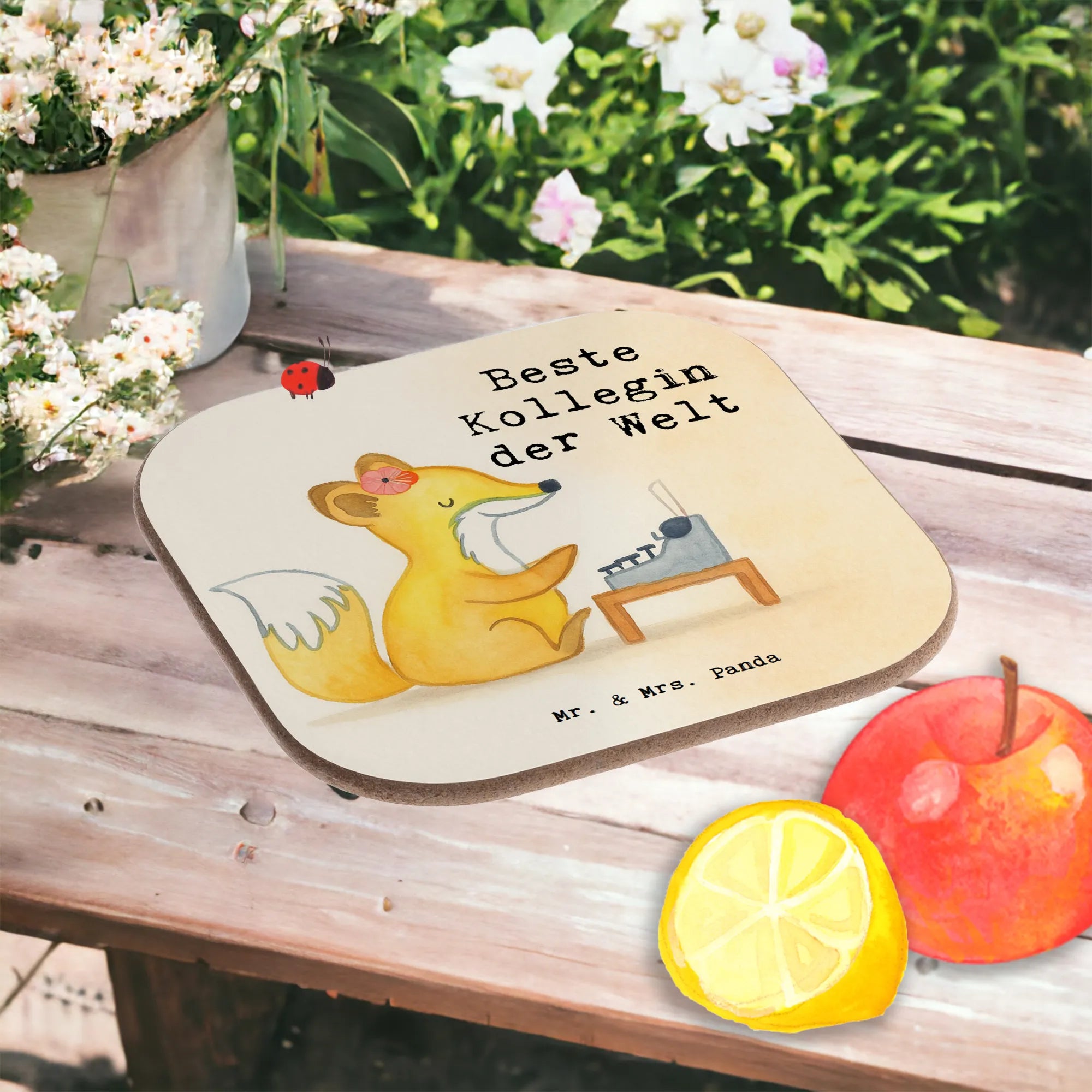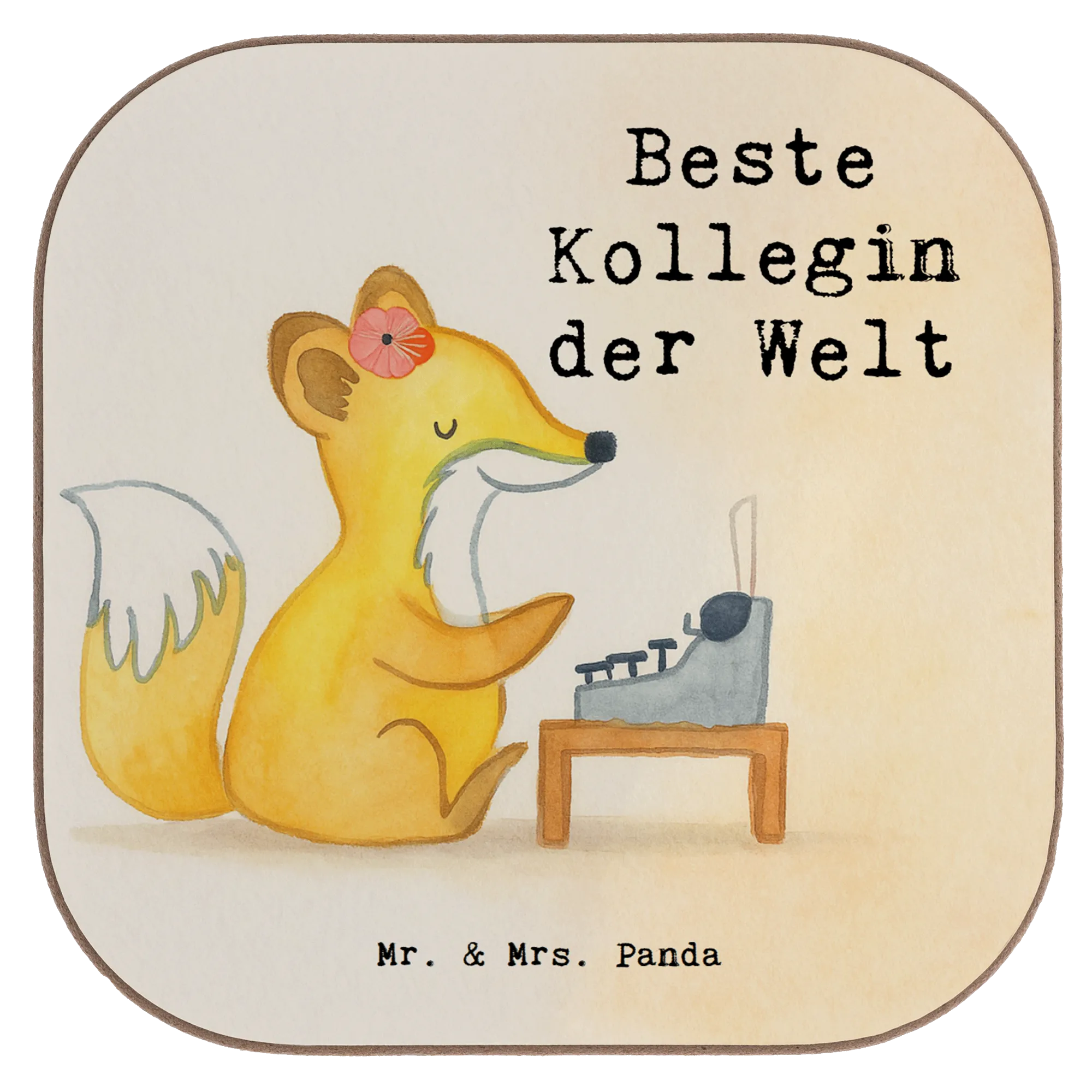 Ein kleines Geschenk mit großer Wirkung: Unser quadratischer Untersetzer „Fuchs – Beste Kollegin der Welt“ aus der Beziehungen-Kollektion von Mr. & Mrs. Panda ist die perfekte Aufmerksamkeit für Deine liebe Kollegin. Der süße Fuchs mit Blume im Haar sitzt vor einer Schreibmaschine und strahlt Fleiß und Charme aus. Der Slogan „Beste Kollegin der Welt" bringt Deine Dankbarkeit charmant auf den Punkt. 🎁