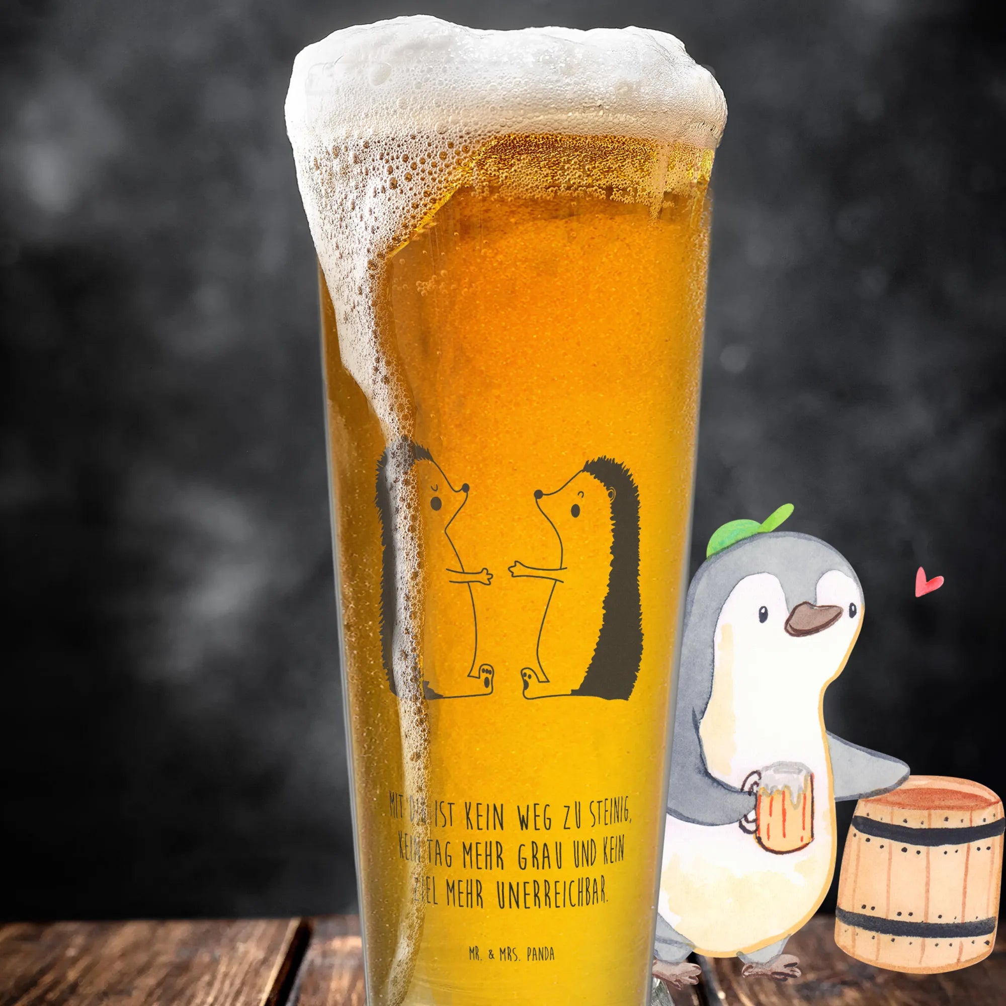 Das wunderschöne Bierglas 'Igel Liebe' aus der Kollektion Liebe von Mr. & Mrs. Panda ist das perfekte Geschenk für alle Bierliebhaber und Verliebte. Ob zum Geburtstag, zum Jahrestag, zur Hochzeit oder einfach als Liebesbeweis – dieses Bierglas mit seinem liebevollen Motif wunderschöner Igelchen wird das Herz deines Partners höher schlagen lassen. Die Igel stehen sich gegenüber, mit geschlossenen Augen und Zuneigung in den Händen, während sie unsere Botschaft übermitteln: 'Mit dir ist kein Weg zu steinig, kein Tag mehr grau und kein Ziel mehr unerreichbar.' Das Gefühl, verliebt zu sein und den perfekten Partner gefunden zu haben, ist unbezahlbar und spiegelt sich in unserem einzigartigen Design wider.