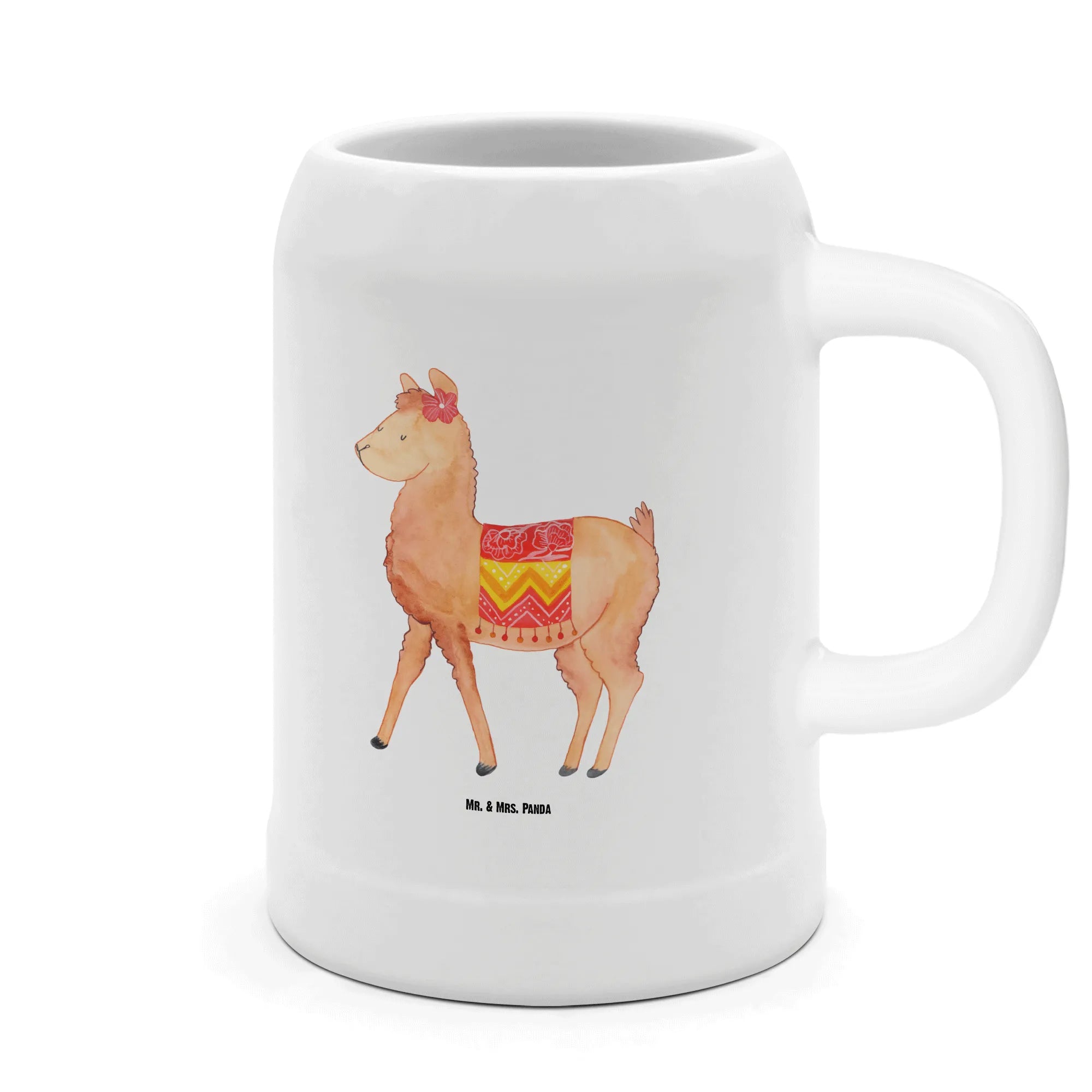 Der Bierkrug "Alpaka stolz" aus der Kollektion von Mr. & Mrs. Panda ist das perfekte Geschenk für alle, die Alpakas und gemütliche Bierabende lieben. Hergestellt aus robustem Steingut, fasst dieser Krug 500 ml köstliches Bier und ist somit ideal für deine nächsten Grillabende oder Feiern im Biergarten.