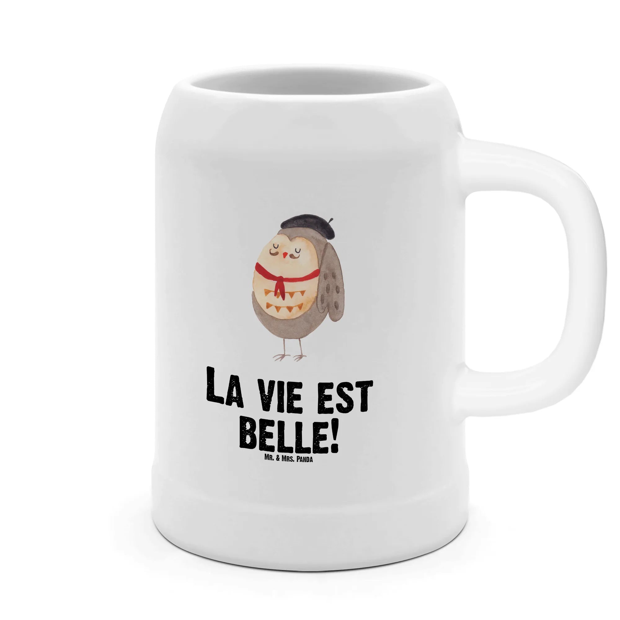 Der Eule Französisch Bierkrug von Mr. & Mrs. Panda ist das perfekte Geschenk für alle, die Eulen und ein Stück Frankreich in ihrem eigenen Zuhause haben möchten! Dieser liebevoll gestaltete Bierkrug ist aus robustem Steinzeug gefertigt und hat eine Füllmenge von 500 ml – ideal für gesellige Runden im Biergarten oder gemütliche Abende auf der Couch.