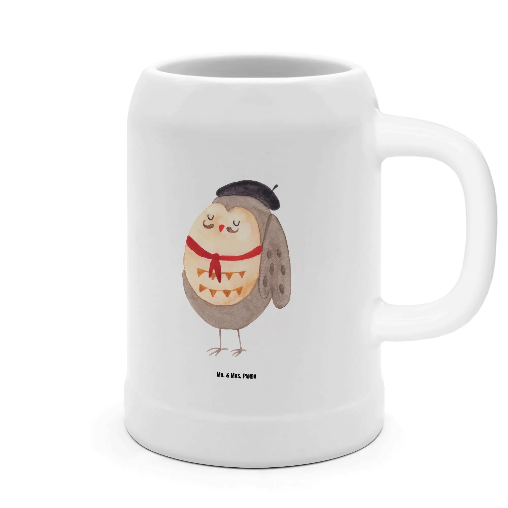 Entdecke den zauberhaften Bierkrug Eule Französisch von Mr. & Mrs. Panda! Dieser liebevoll gestaltete Bierkrug aus robustem Steingut ist ideal für jeden Eulenliebhaber und bringt mit seinem charmanten Design eine Portion französischen Flair in dein Zuhause.