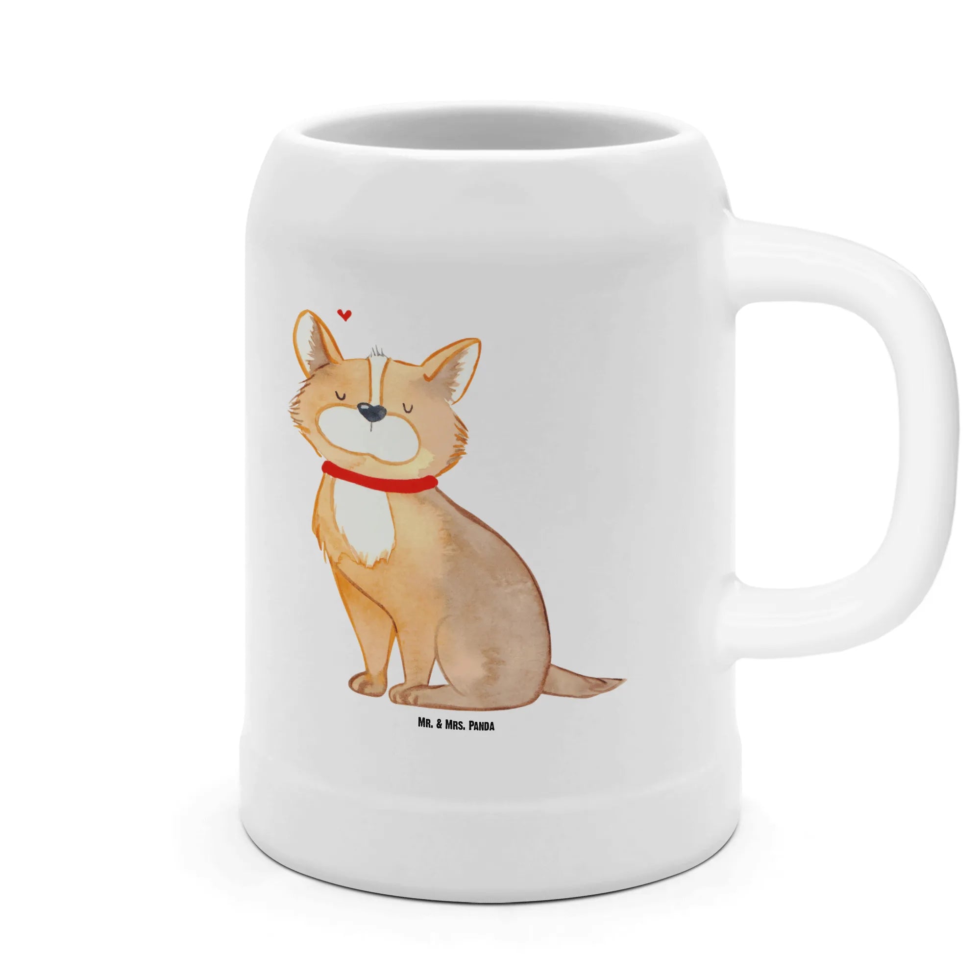 Suchst du das perfekte Geschenk für einen Hundeliebhaber oder vielleicht für dich selbst? Dann ist der Bierkrug "Hundeglück" aus der Hunde Kollektion von Mr. & Mrs. Panda genau das Richtige für dich! Mit einem bezaubernden Hundemotiv, das einen fröhlichen Corgie mit einem roten Halsband zeigt, wird dieser Bierkrug zum absoluten Hingucker auf jeder Feier.