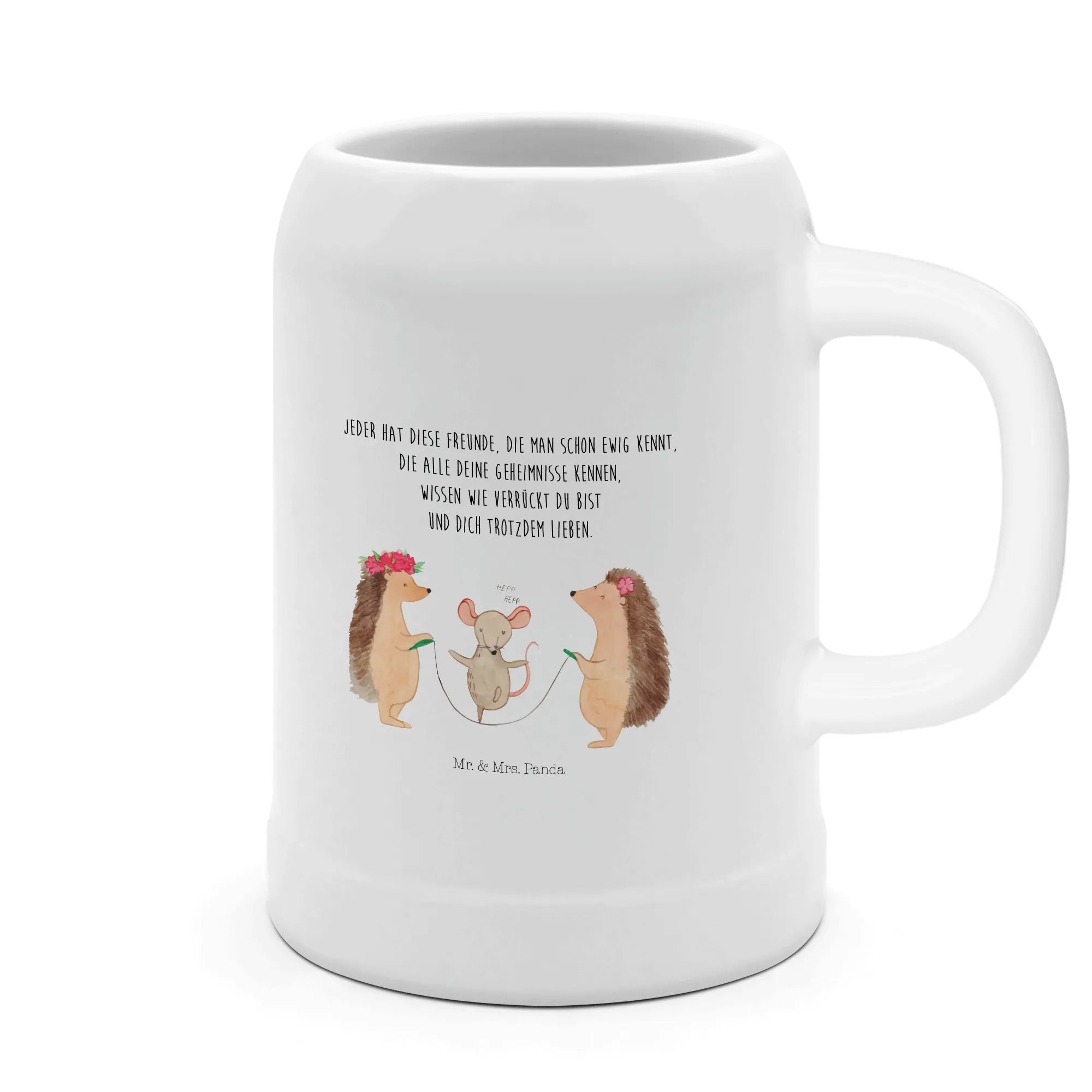 Der Bierkrug mit dem fröhlichen Motiv "Igel Seilhüpfen" aus der Small World Kollektion von Mr. & Mrs. Panda ist das perfekte Geschenk für Jung und Alt. Mit einer Füllmenge von 500 ml bietet er genug Platz für dein Lieblingsbier, während der robuste Steingut-Materialmix dafür sorgt, dass der Krug sowohl langlebig als auch spülmaschinenfest ist.