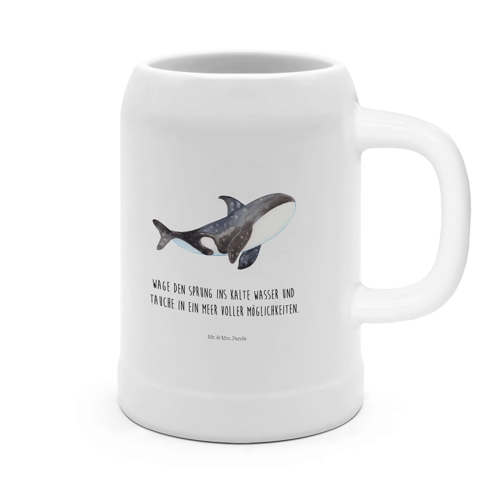 Der wunderschöne Bierkrug mit Orca-Motiv aus der Meerestiere-Kollektion von Mr. & Mrs. Panda ist das perfekte Geschenk für alle, die das Meer und seine faszinierenden Kreaturen lieben. Mit einer Füllmenge von 500 ml und einem robusten Steingut-Design ist dieser Bierkrug ideal für gesellige Abende im Biergarten oder einfach für einen entspannten Abend zu Hause.