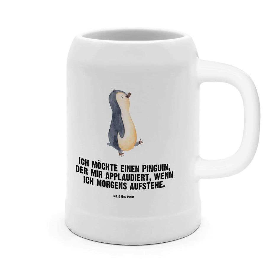 Der Bierkrug 'Pinguin marschierend' aus der bezaubernden Pinguin-Kollektion von Mr. & Mrs. Panda ist das perfekte Geschenk für alle Pinguin-Liebhaber und Bierfreunde! 🍻 Mit einem fassungsvermögen von 500 ml ist dieser robuste Steingutkrug ideal, um dein kühles Bier in der warmen Jahreszeit stilvoll zu genießen. Der liebevoll gezeichnete Pinguin auf dem Krug strahlt eine verspielte und charmante Ausstrahlung aus, die jeden in seinen Bann zieht.