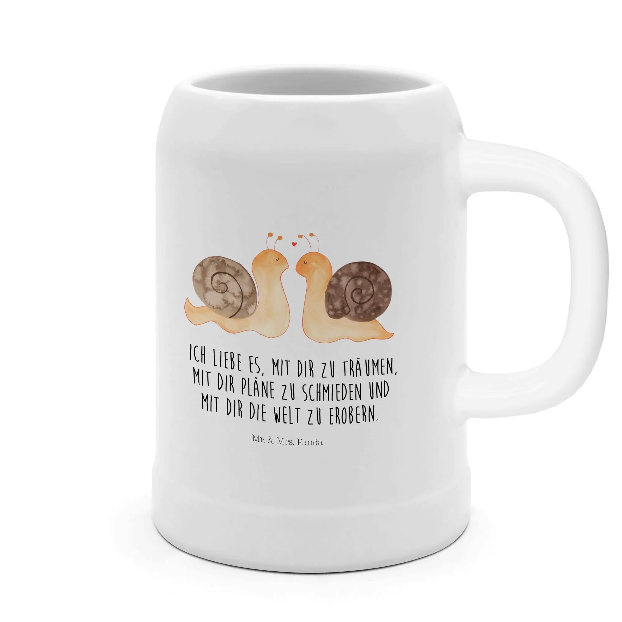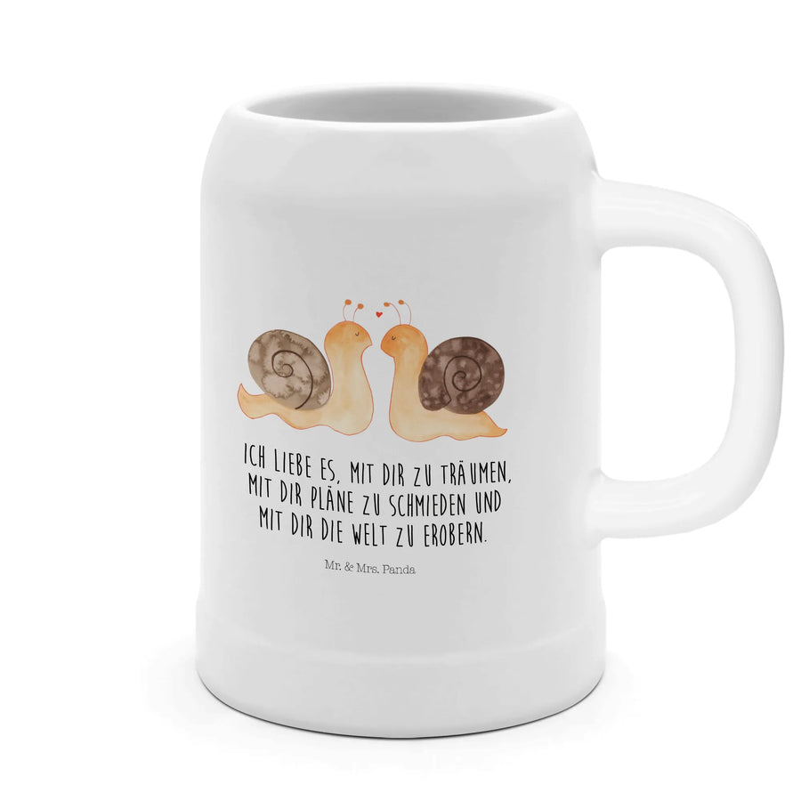 Dieser wunderbare Bierkrug aus der Kollektion "Liebe" von Mr. & Mrs. Panda ist das perfekte Geschenk für Paare, die ihre Zuneigung zueinander feiern möchten. Mit einem einzigartigen Motiv von zwei niedlichen Schnecken, die sich liebevoll gegenüberstehen, und dem romantischen Slogan "Ich liebe es, mit dir zu träumen, mit dir Pläne zu schmieden und mit dir die Welt zu erobern", bietet dieser Krug nicht nur einen praktischen Nutzen, sondern bringt auch jeden Tag ein Stück Liebe in deinen Alltag. Ob als Hochzeitsgeschenk, zum Verlobungsfeier oder als süßes Liebesgeschenk zum Jahrestag – dieser Bierkrug ist ein wahrer Liebesbeweis! 😊