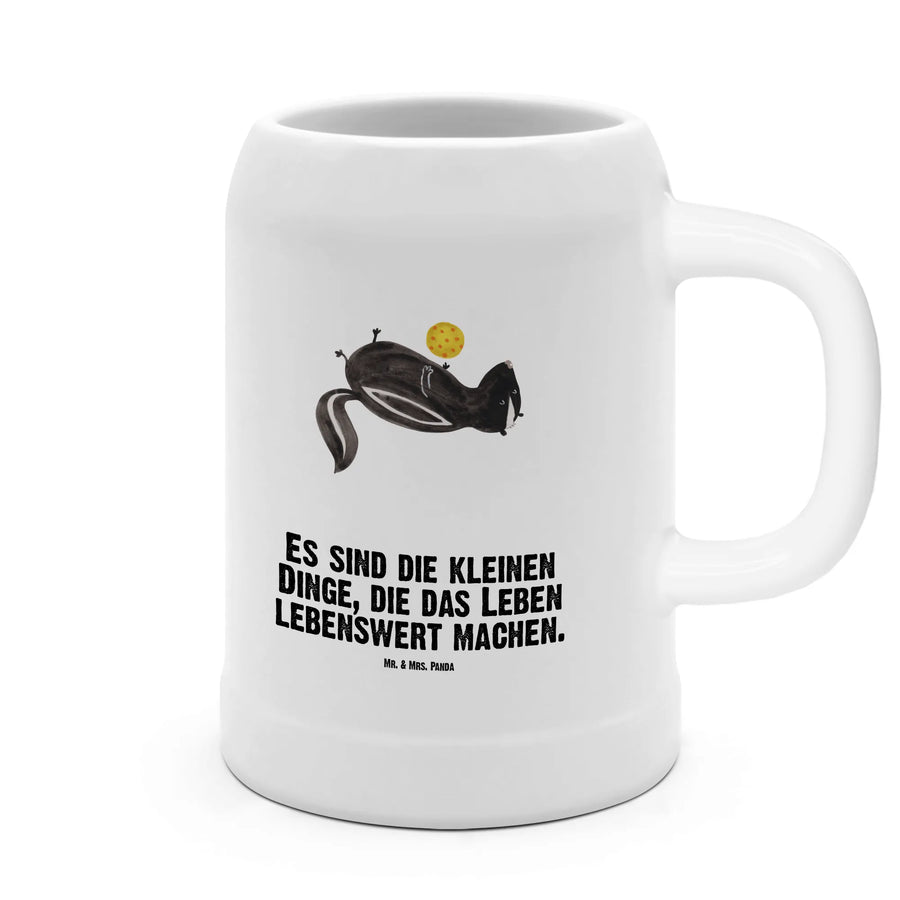 Der niedliche Bierkrug mit dem Stinktier Ball Motiv aus der Stinktier-Kollektion von Mr. & Mrs. Panda ist nicht nur ein praktisches Zubehör für dein Bier, sondern auch ein echtes Highlight in deiner Sammlung. Mit einem Füllvolumen von 500 ml ist dieser rustikale Krug perfekt für den Biergarten, Gartenfeste oder gemütliche Abende mit Freunden.