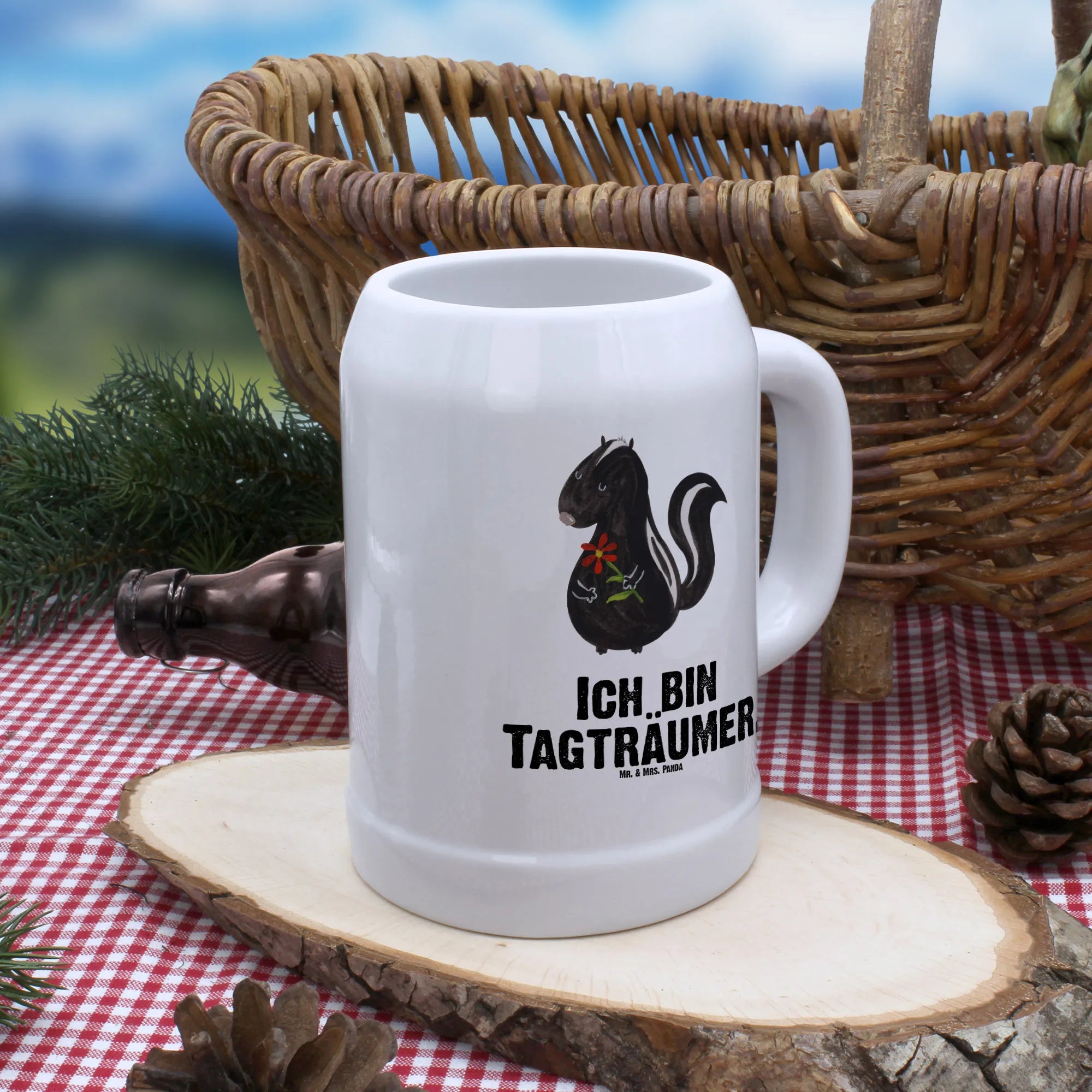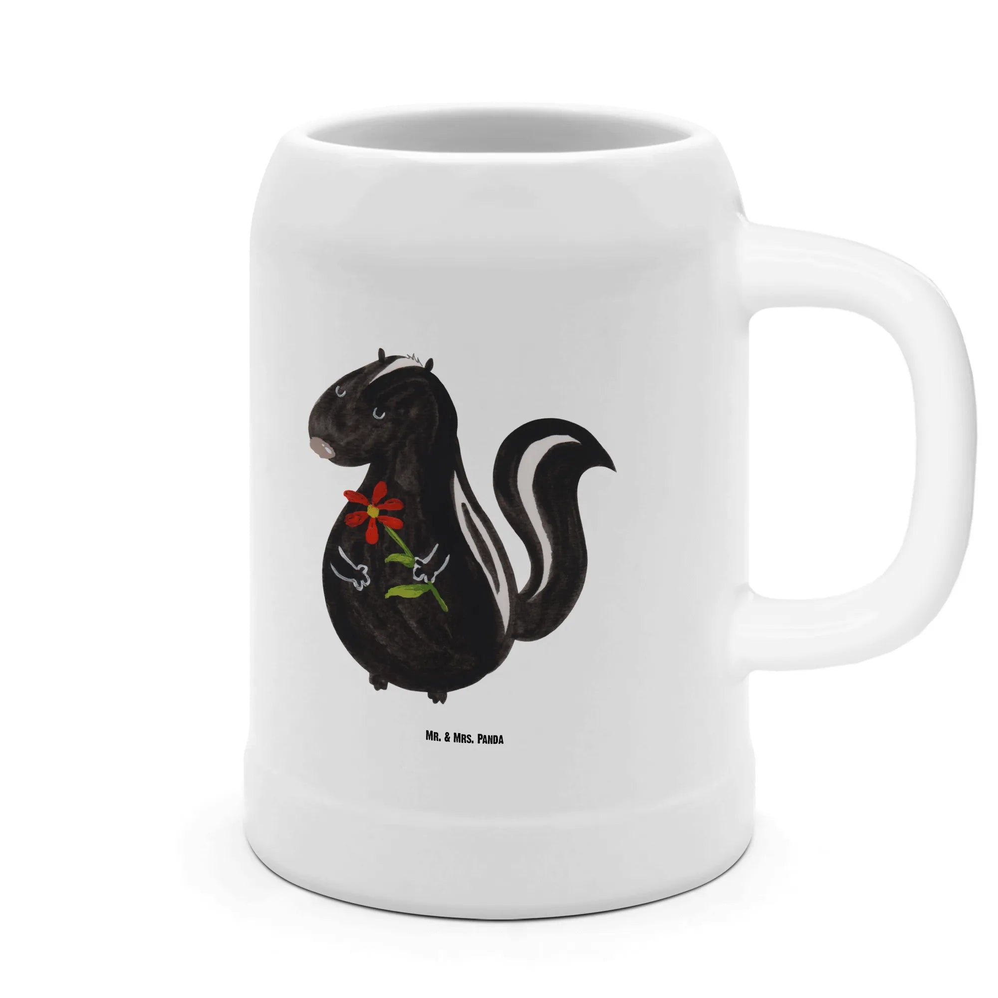 Der wunderschöne Bierkrug "Stinktier Blume" aus der einzigartigen Stinktier-Kollektion von Mr. & Mrs. Panda ist das perfekte Geschenk für alle bierliebenden Tagträumer und Naturfreunde. Hergestellt aus robustem Steingut bietet der Krug mit einer Füllmenge von 500 ml nicht nur Platz für dein Lieblingsbier, sondern überzeugt auch durch einen hohen Rand, der ideal für kühles Bier ist.