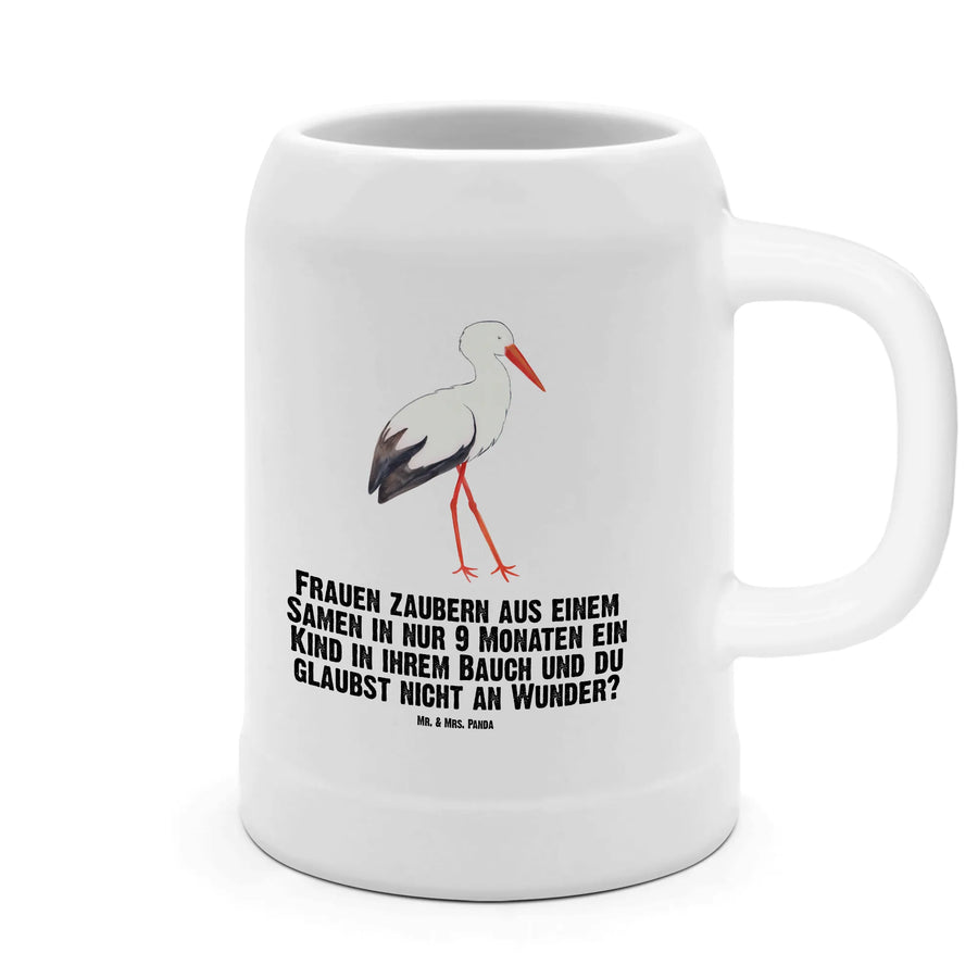 Der Bierkrug Storch von Mr. & Mrs. Panda ist das perfekte Geschenk für werdende Mütter und alle, die sich auf eine Schwangerschaft freuen! Mit einem süßen Storch, der ein Baby in einem Tuch trägt, symbolisiert dieser liebevoll gestaltete 500 ml Krug die Freude über neues Leben.
