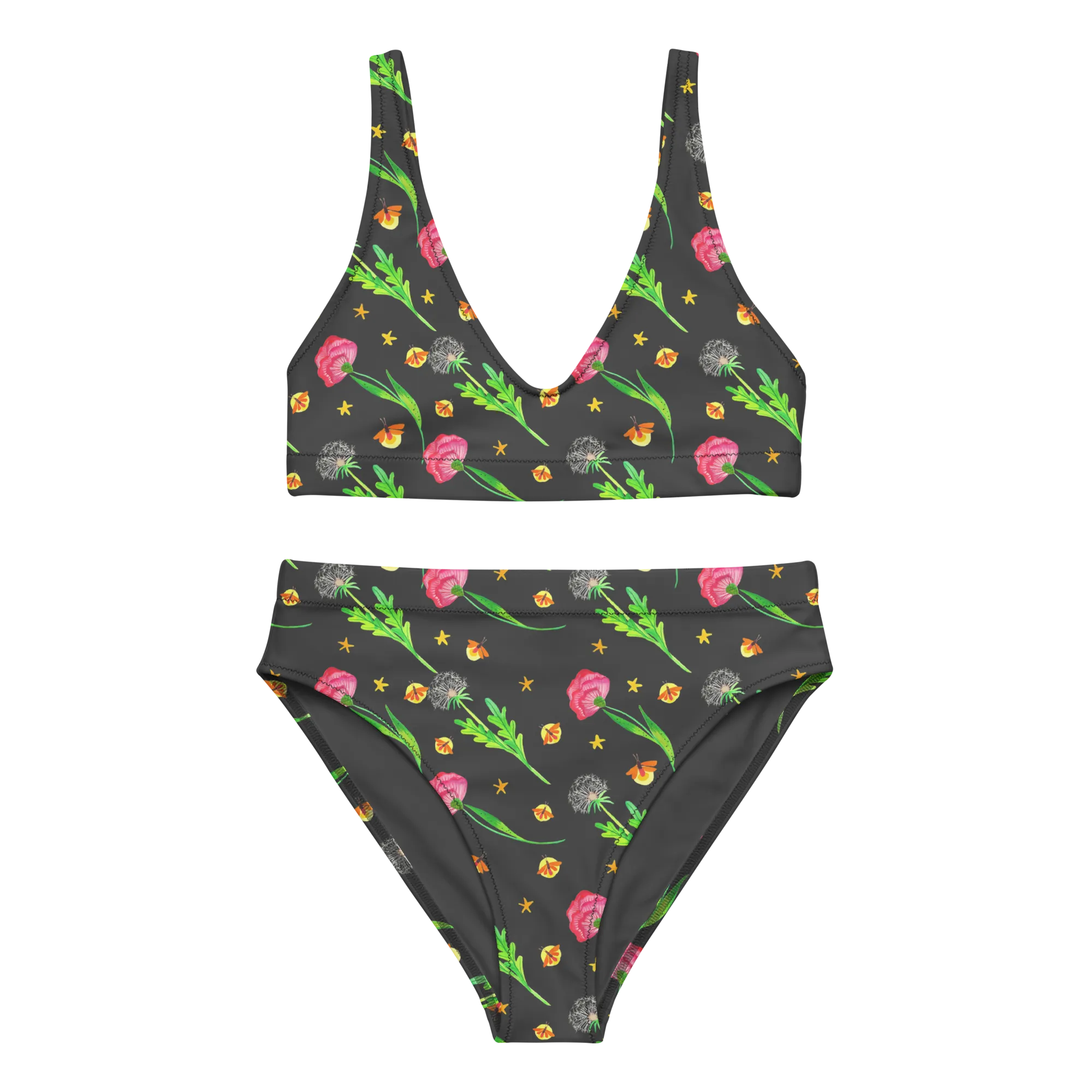 Bikini Glühwürmchen Design Bikinihose, 2er Set, Bikini, Bikinioberteil, High Waist Bikini, Zweiteiler, Bademode, Blumen, Glühwürmchen, Pusteblumen, Muster